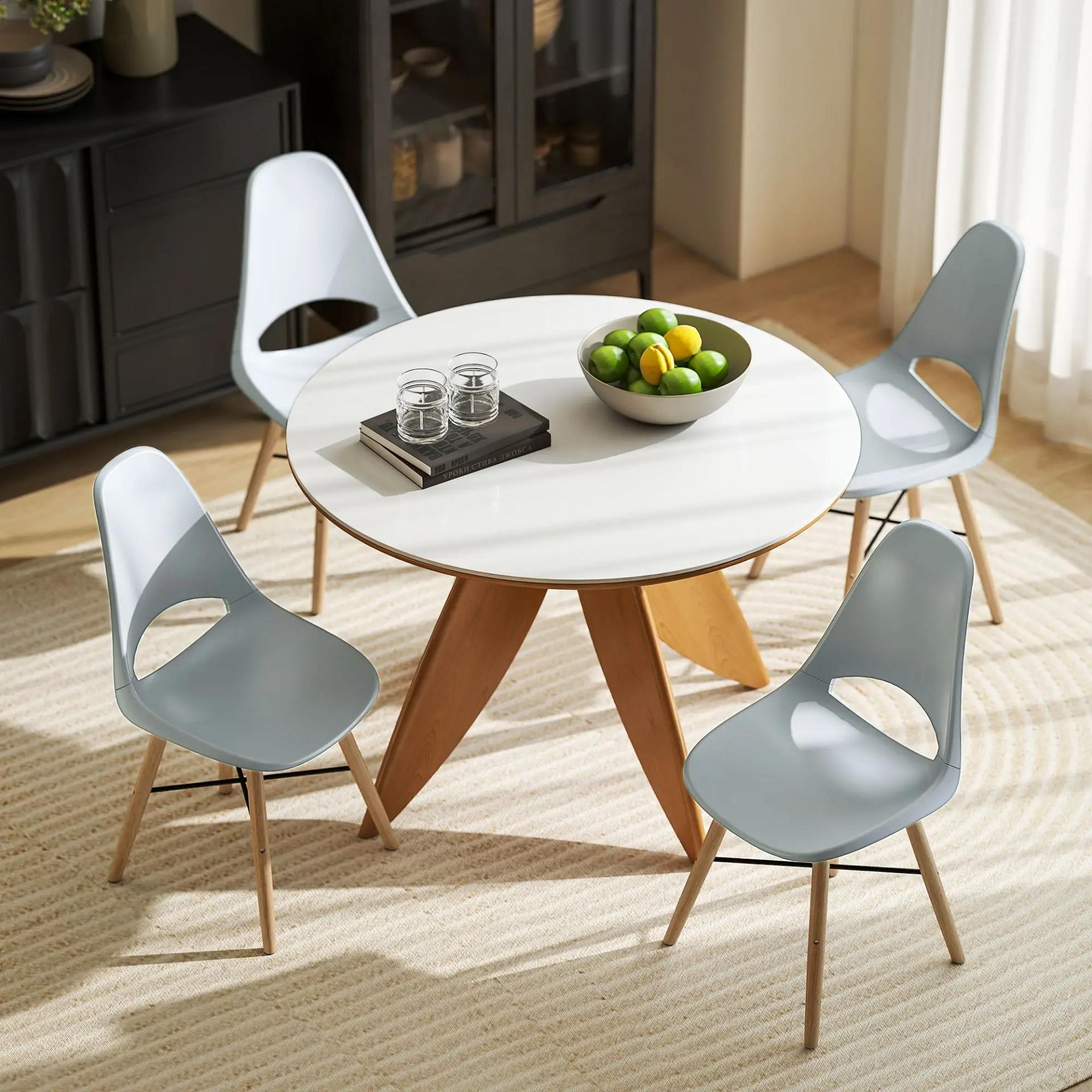 Pack de 2 Sillas de Comedor de Plástico con Respaldo Curvado y Patas de Madera de Caucho Gris