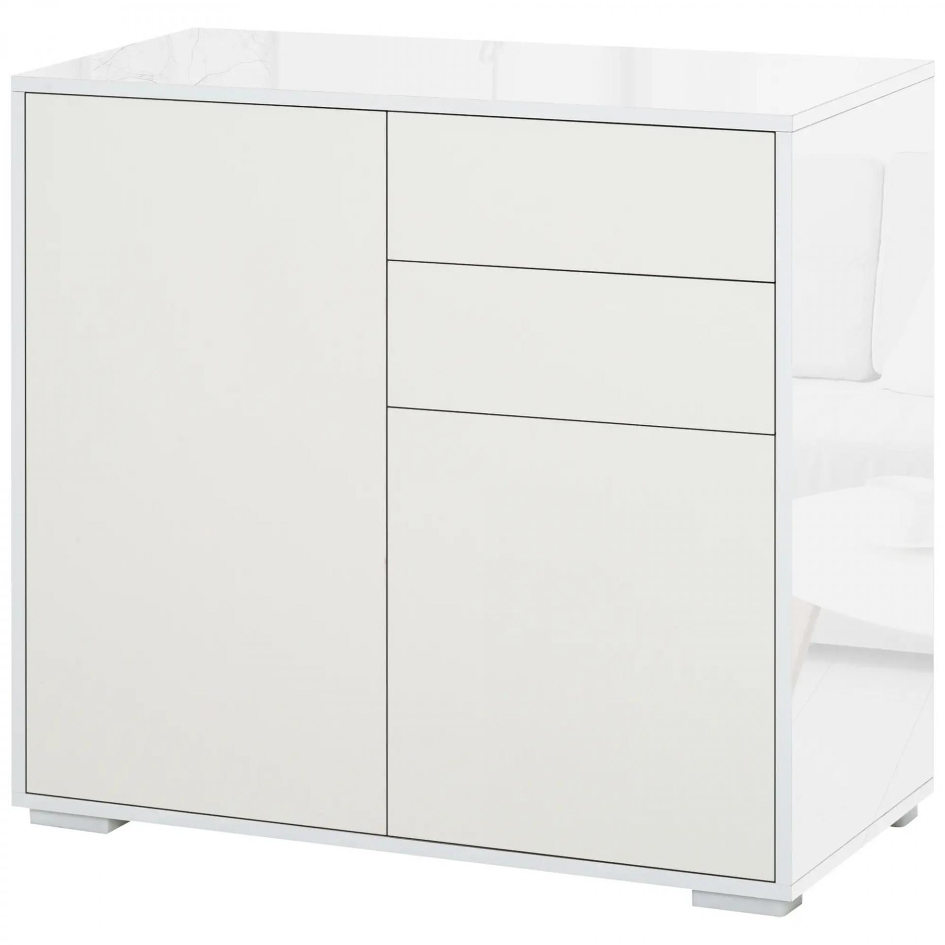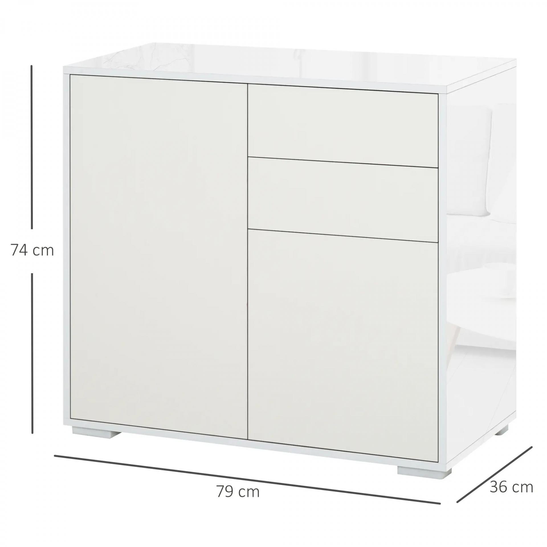 Aparador para Cocina con 2 Puertas 2 Cajones Marco de Blanco Brillante Estante Ajustable Apertura a Presión Armario de Almacenamiento para Dormitorio Salón 79x36x74 cm Blanco