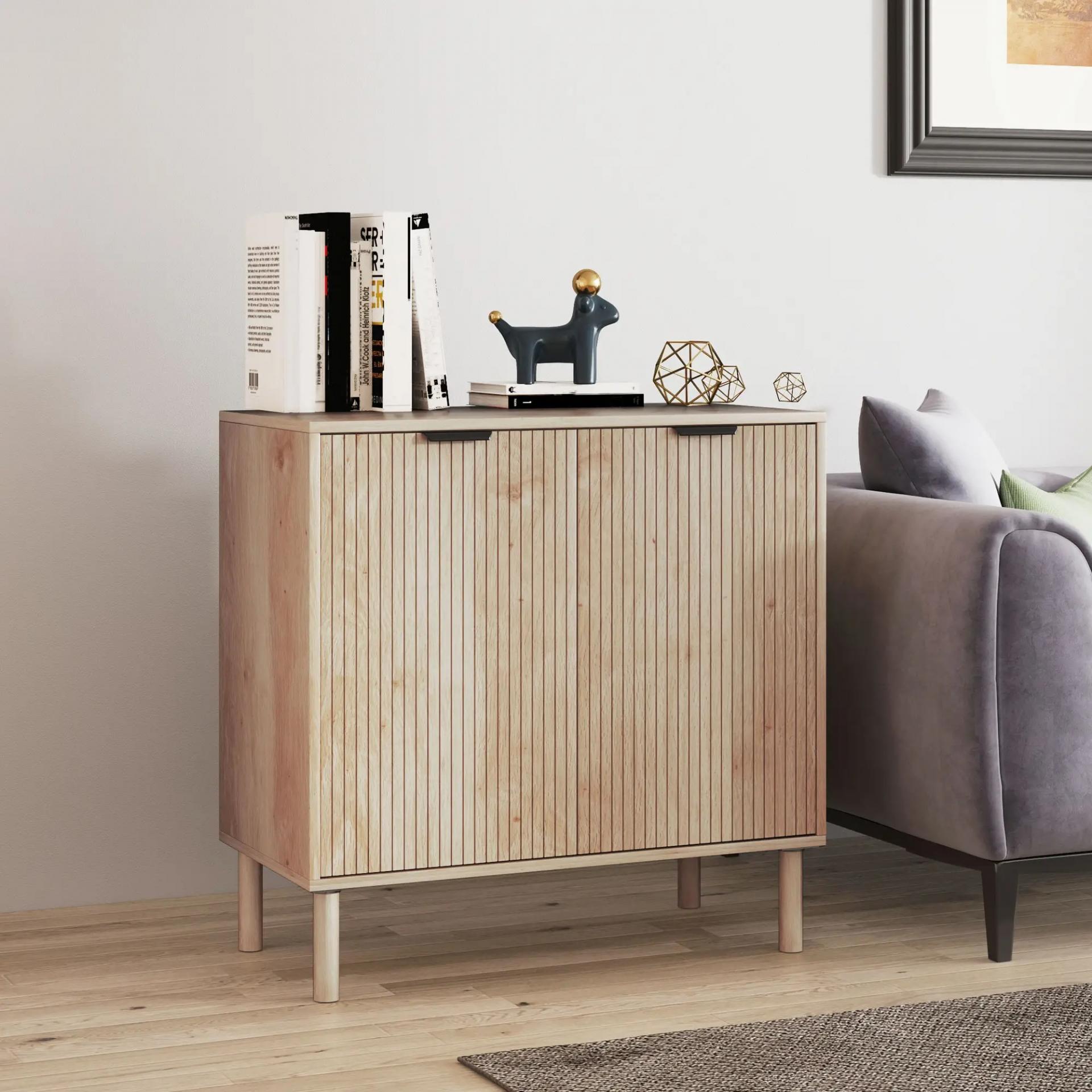 Aparador de Salón Aparador con Estante Ajustable 2 Puertas Sistema Anti-vuelco y Patas de Madera 78x40x77,5 cm Roble