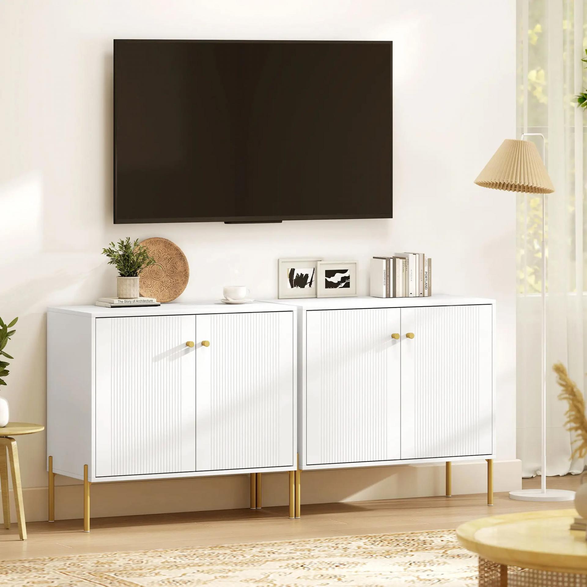 - ALMACENAMIENTO AJUSTABLE: Este aparador dispone de estante regulable en tres alturas dentro de cada armario, ofreciendo versatilidad para guardar todo tipo de artículos con comodidad