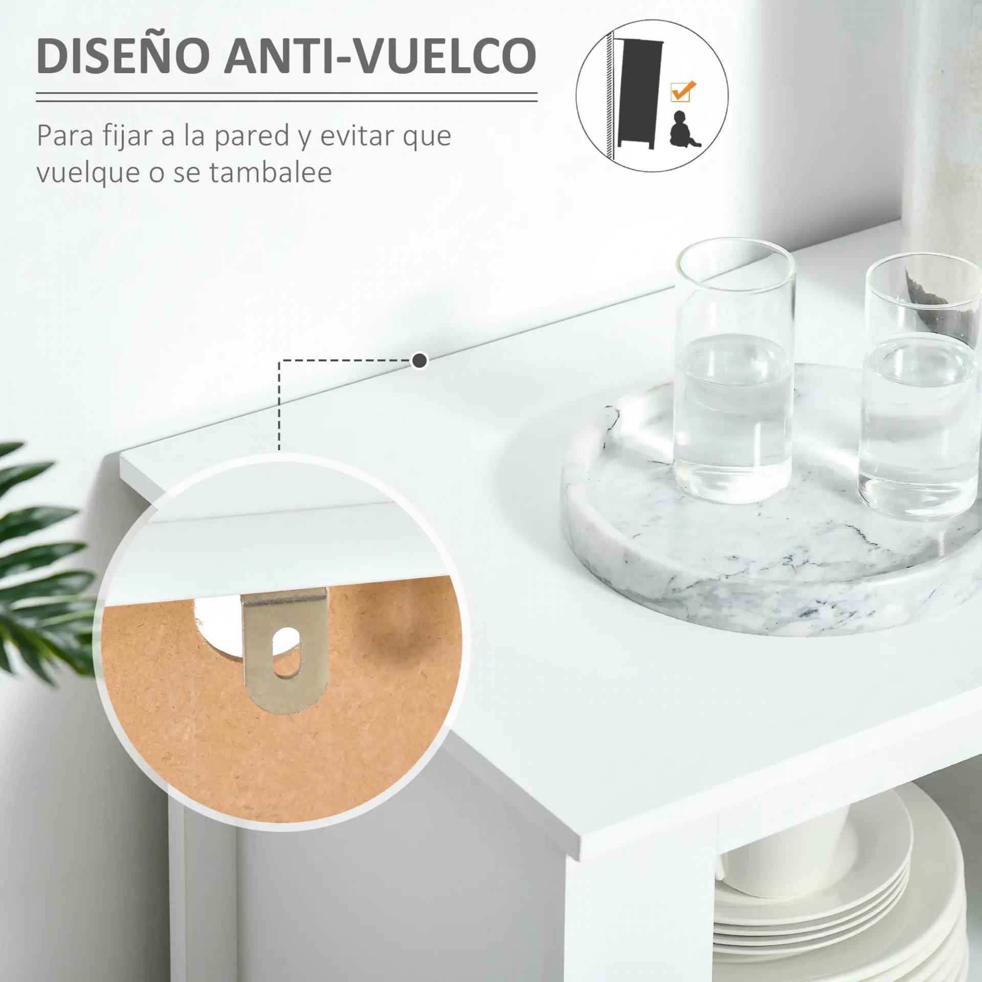 - RESISTENTE Y SEGURO: Hecho de MDF de madera laminado en color blanco veteado y puertas enmarcadas de vidrio templado. Es un mueble robusto, que no requiere apenas mantenimiento. Incluye sistema anti-vuelco de seguridad para fijar en la pared