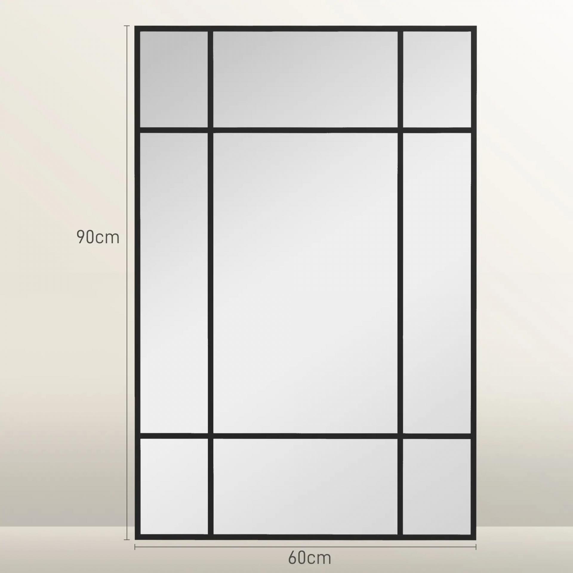 Espejo Rectangular de Pared Espejo de Ventana 90x60 cm con Marco de Metal Espejo Decorativo para Salón Dormitorio Negro