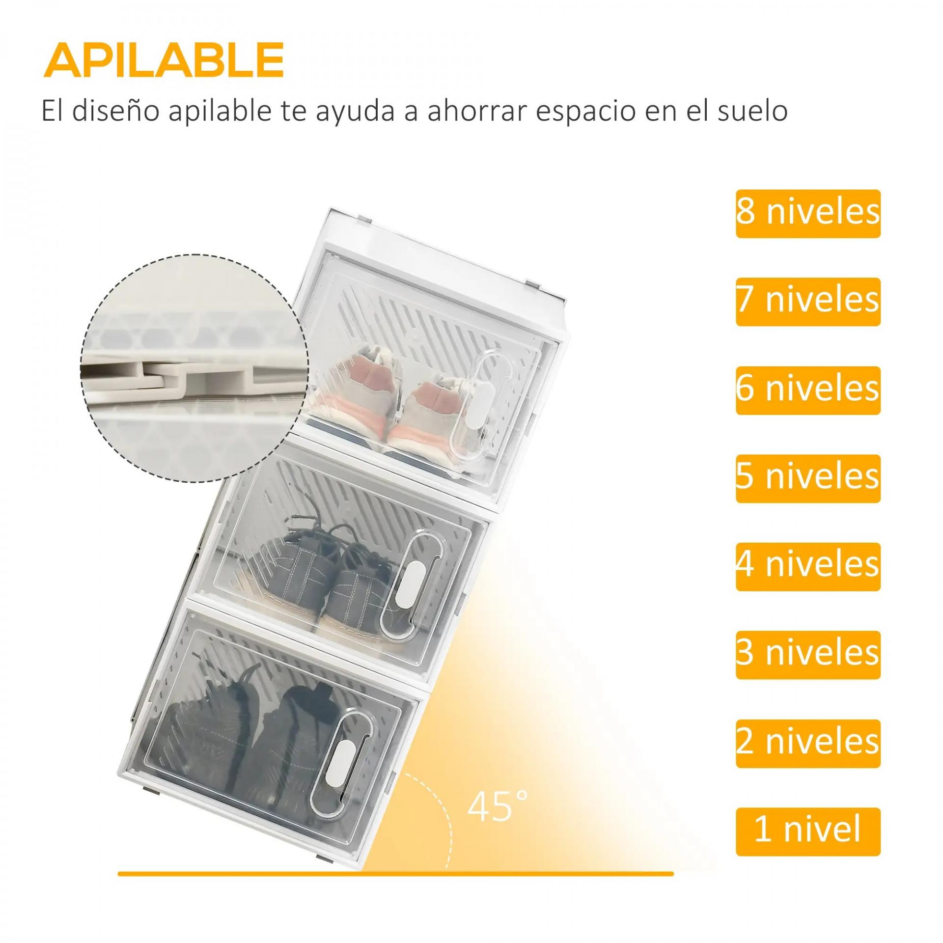 Organizador de Zapatos Modular Estantería Modulable con 8 Cubos Puertas Magnéticas 28x36x21 cm Transparente