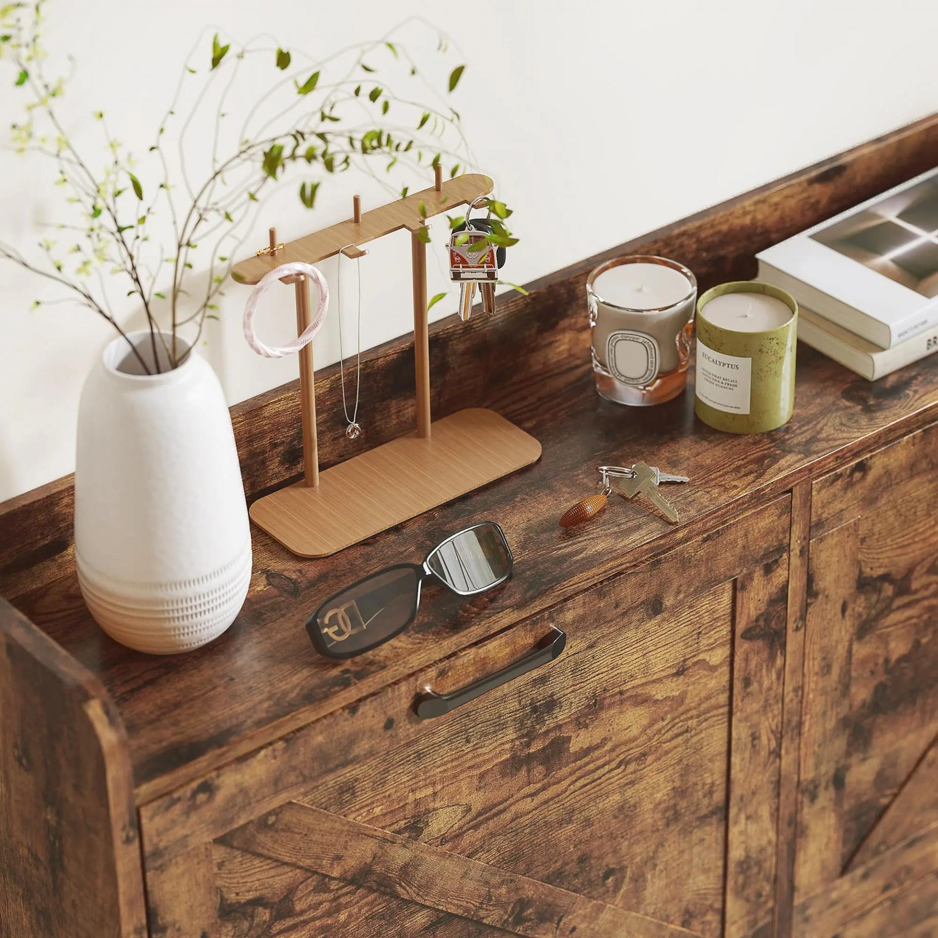 - MUCHO MÁS QUE UN ZAPATERO: Este zapatero de entrada cuenta con una encimera con bordes elevados, perfecta para guardar objetos esenciales como llaves, carteras y gafas de sol, además de servir para exhibir decoraciones y mantener la entrada organizada