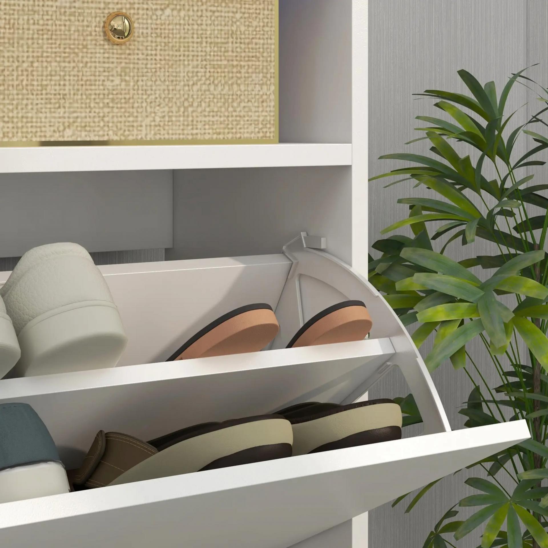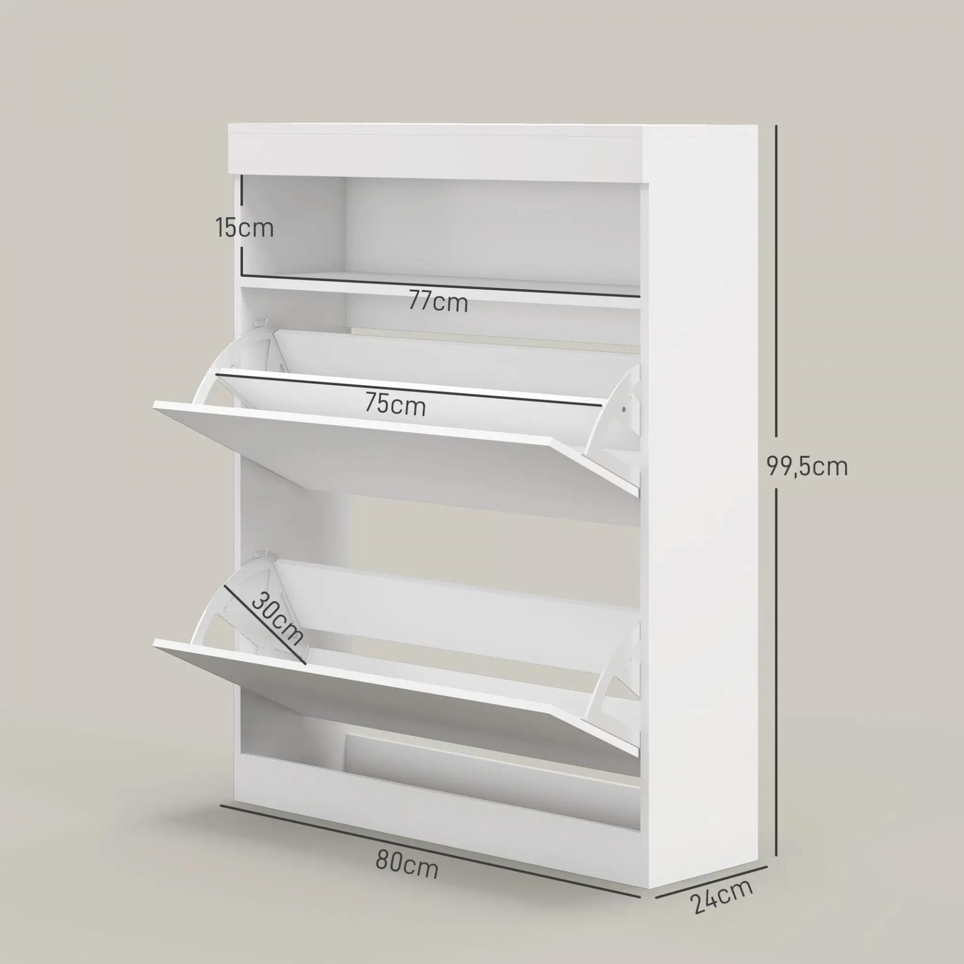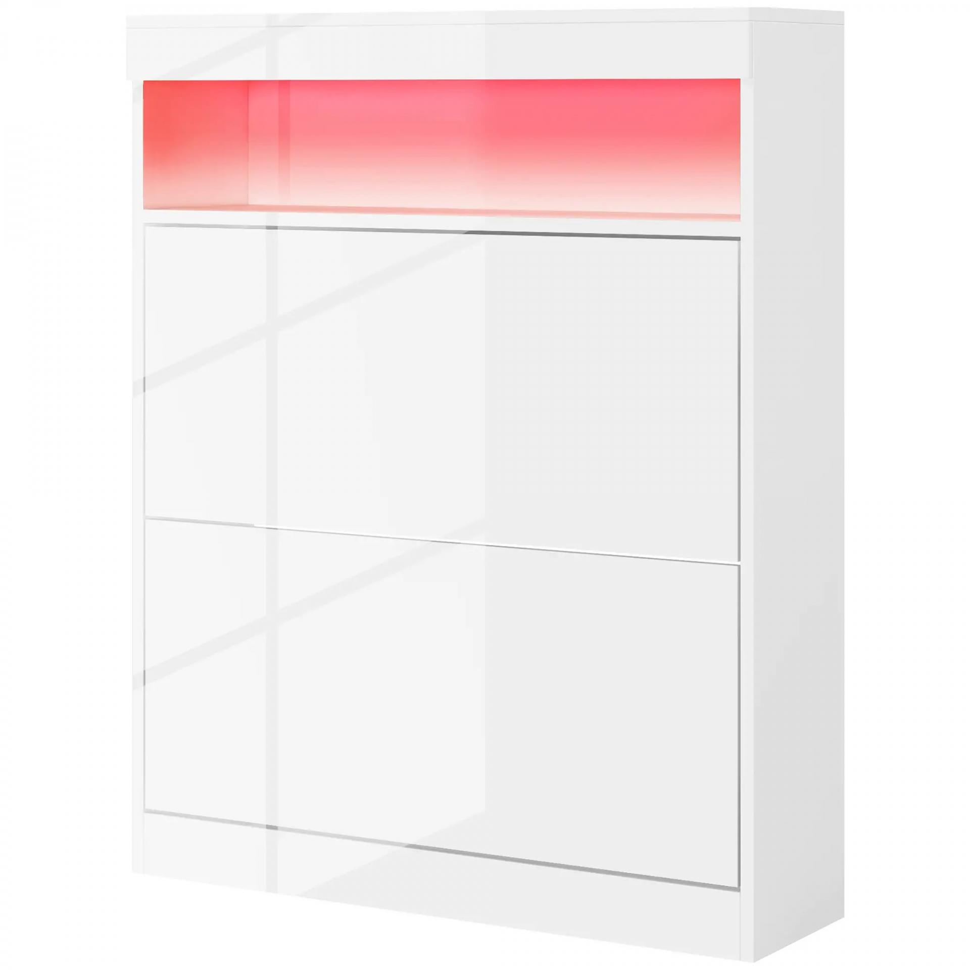 Armario Zapatero con Luces LED y 2 Cajones Abatibles para 12-16 Pares de Zapatos 80x24x99,5 cm Blanco Brillante