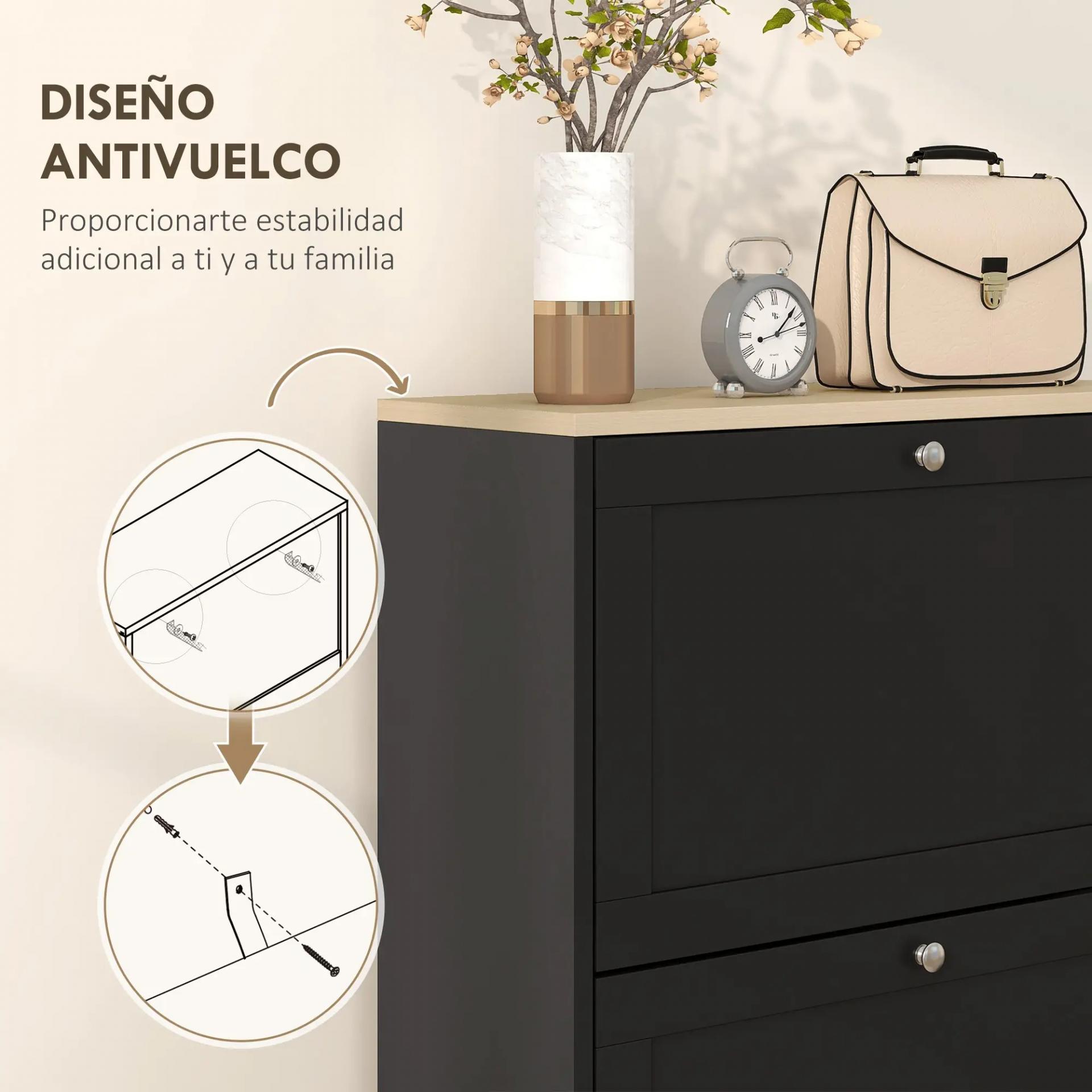 - GRAN CAPACIDAD DE ALMACENAMIENTO: Almacena hasta 18 pares de zapatos en sus cajones abatibles con estantes ajustables, manteniendo tu hogar ordenado y elegante.