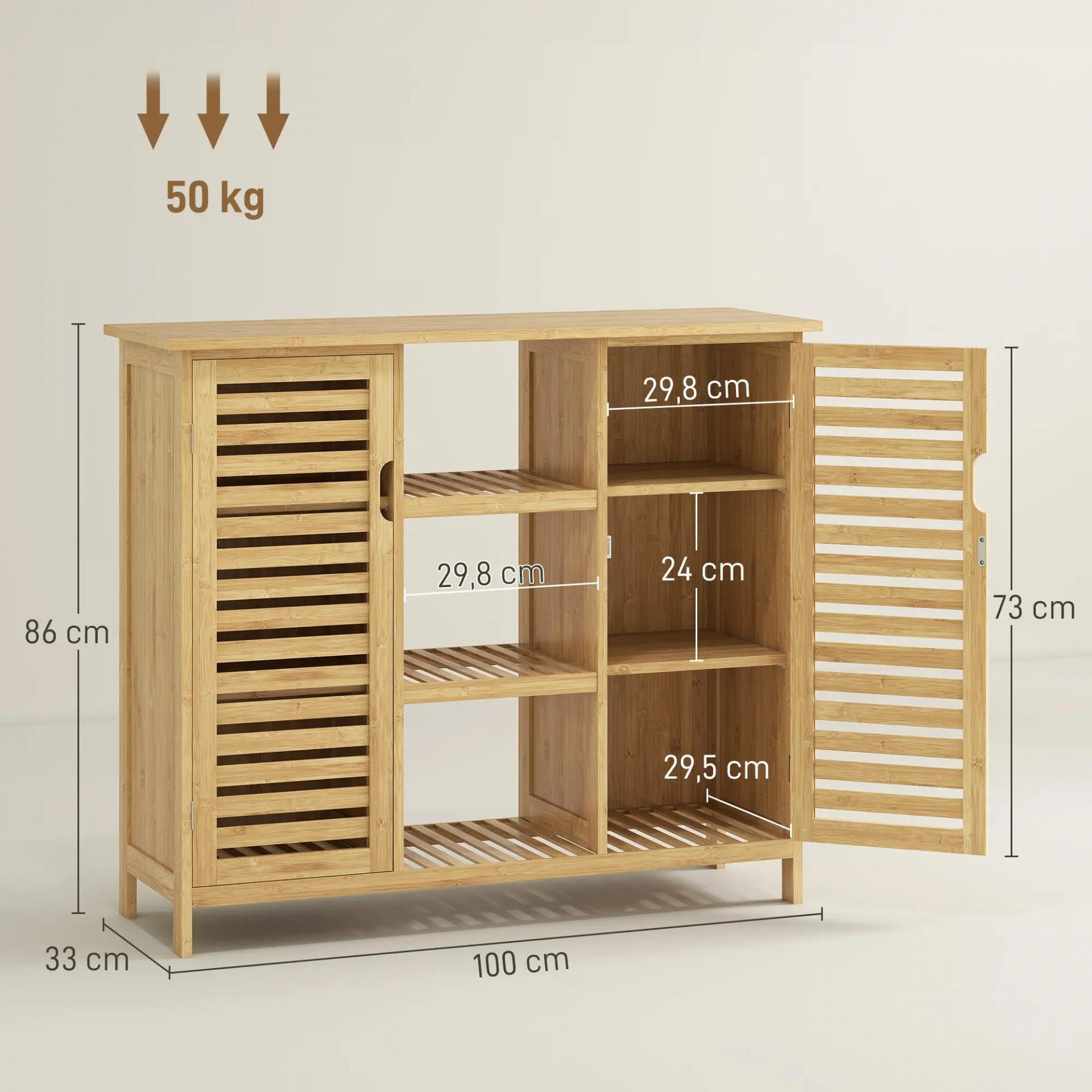 Armario de Almacenaje con 2 Puertas de Bambú de Lamas Estantes y Compartimentos Abiertos 100x33x86 cm Natural