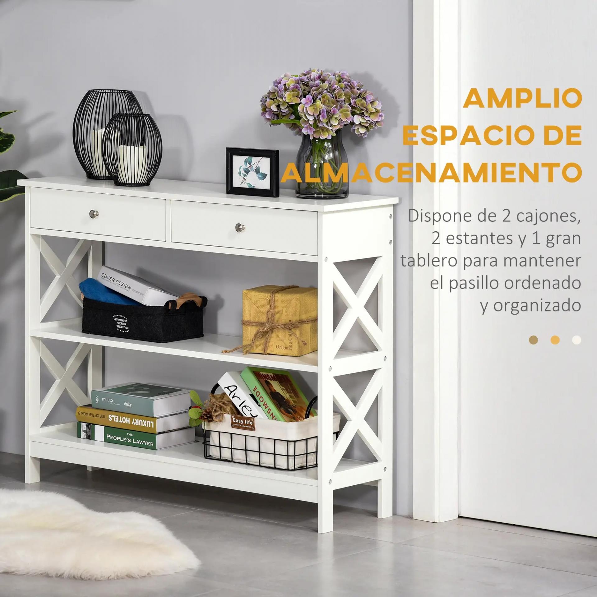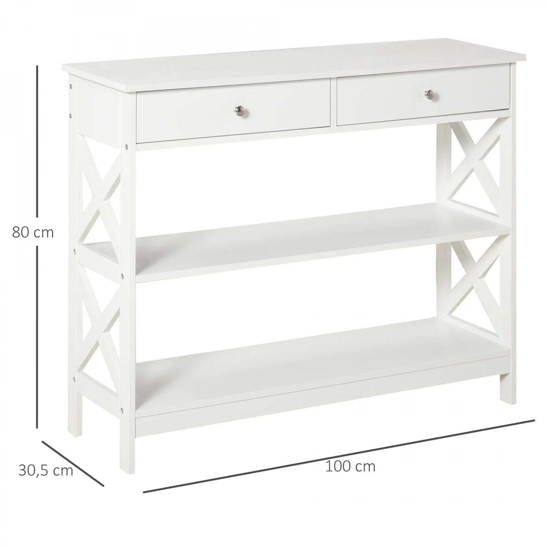 Mesa Consola de Entrada Recibidor con 2 Cajones y 2 Estantes Inferiores Mueble Moderno Base Elevada Antivuelco 100x30,5x80 cm Blanco