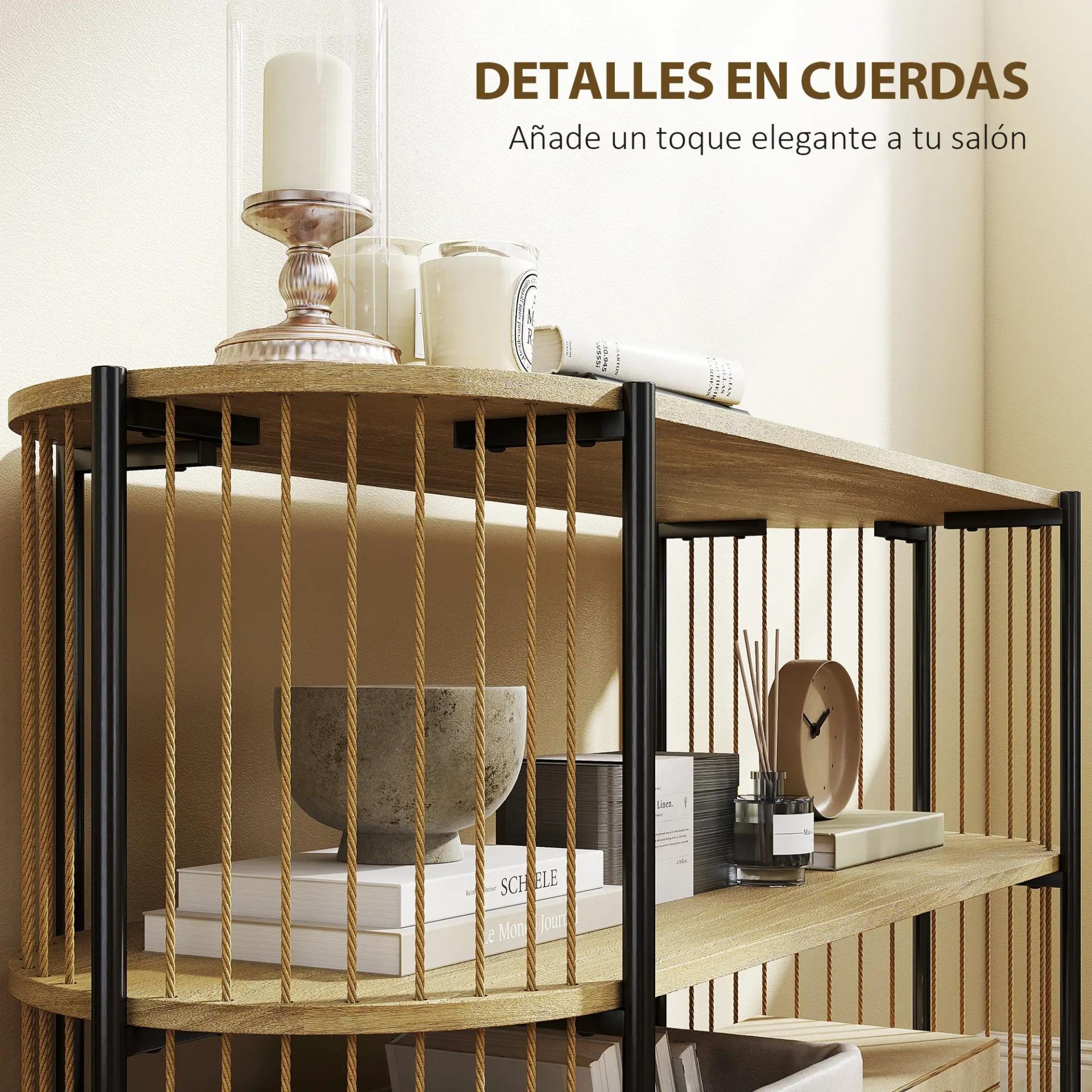 ESTILO CANNAGE: Esta mesa consola cuenta con un bonito detalle en cuerdas trenzadas a mano con acabado en madera, aportándote un carácter bohemio y único, ideal para crear un ambiente acogedor y natural