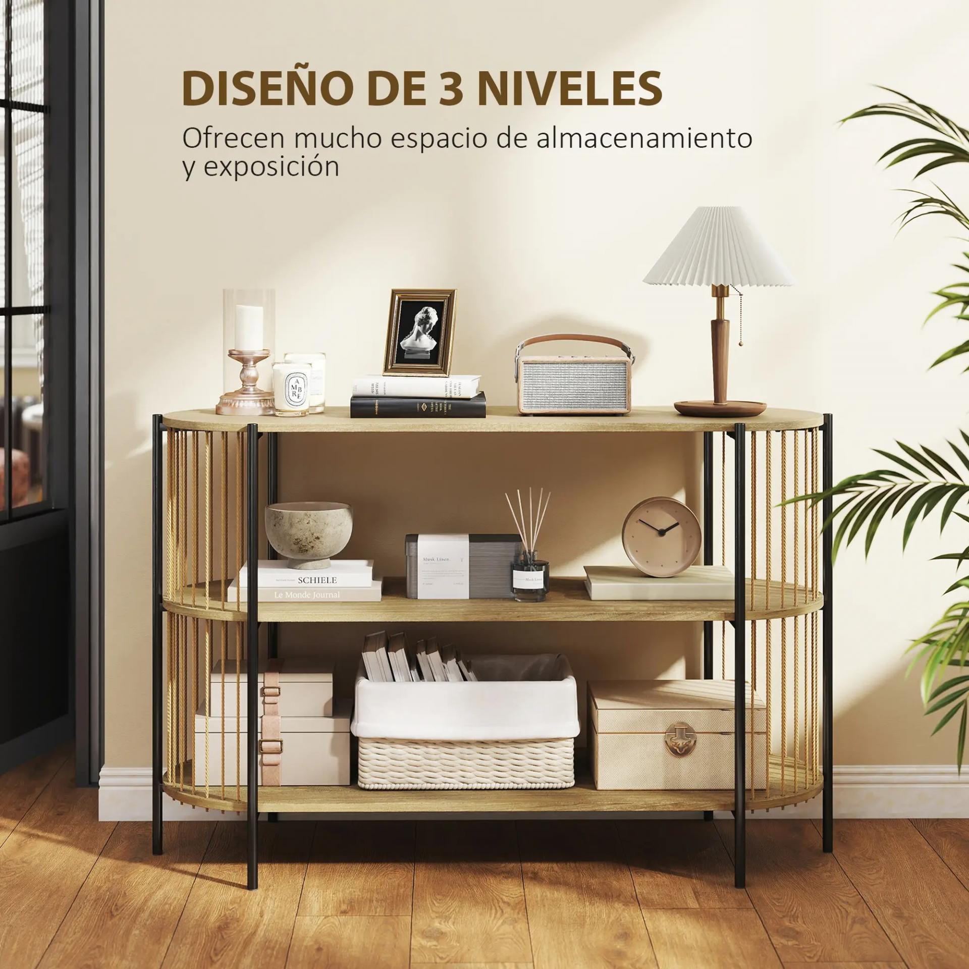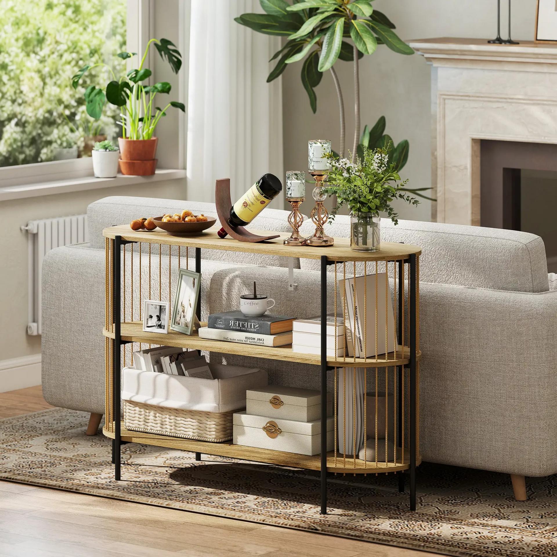 - ALMACENAMIENTO PRÁCTICO: Tres estantes abiertos te ofrecen un amplio espacio para organizar y exponer libros, velas, cestas u objetos decorativos, manteniendo la entrada y el salón siempre ordenados y bonitos