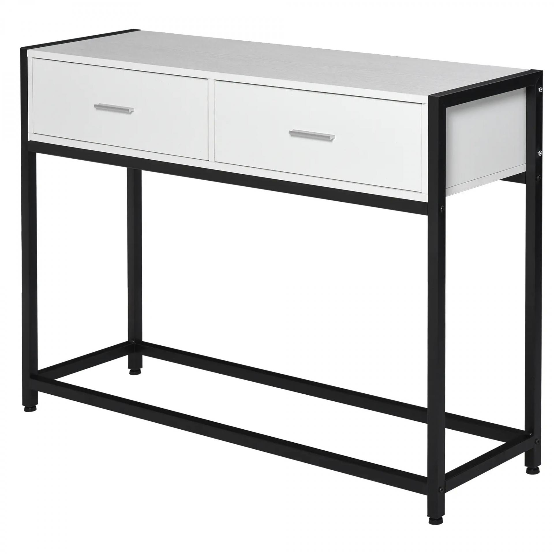 Mesa de Entrada con 2 Cajones y Pies Ajustables Estilo Moderno para Pasillo Salón 120x34x81 cm Blanco y Negro