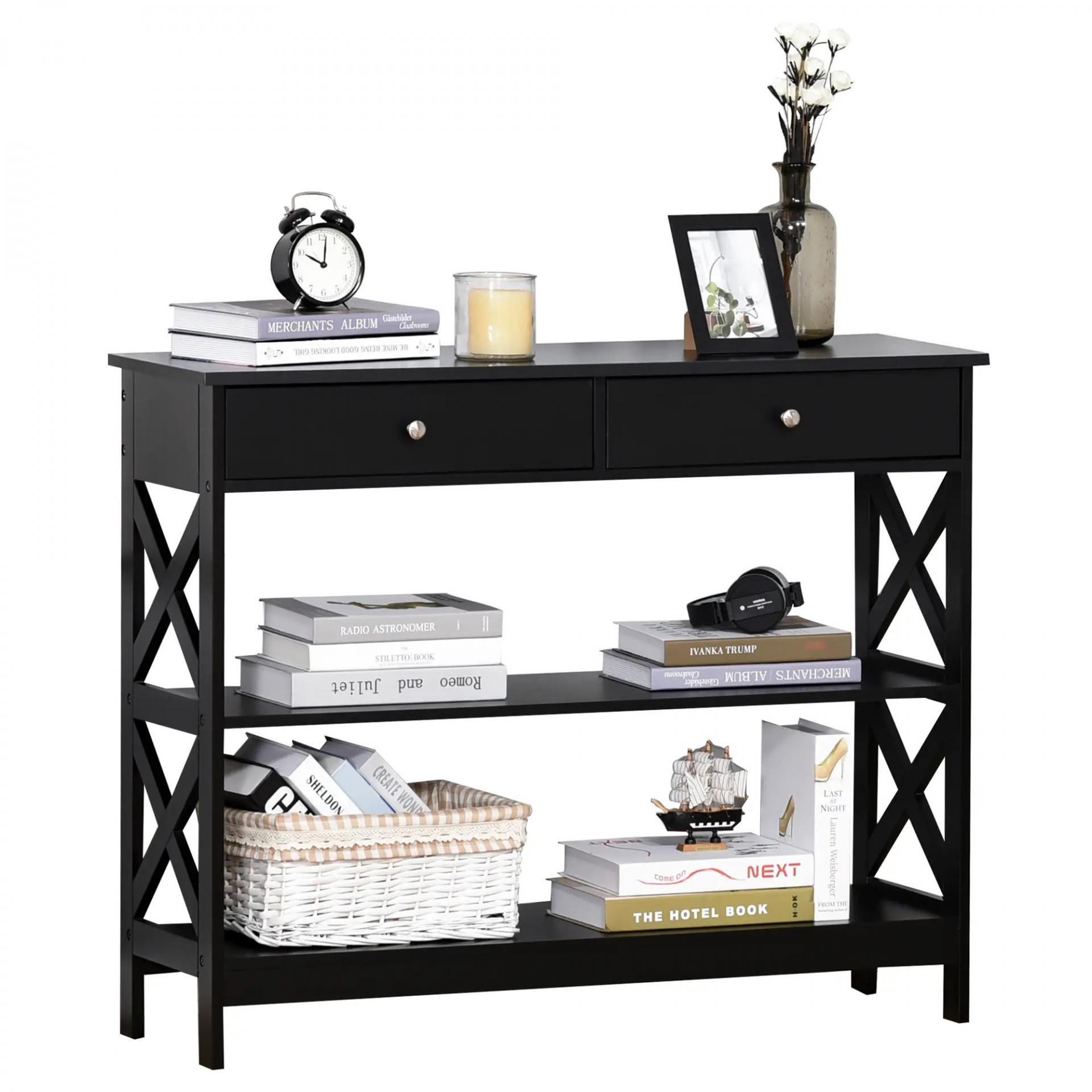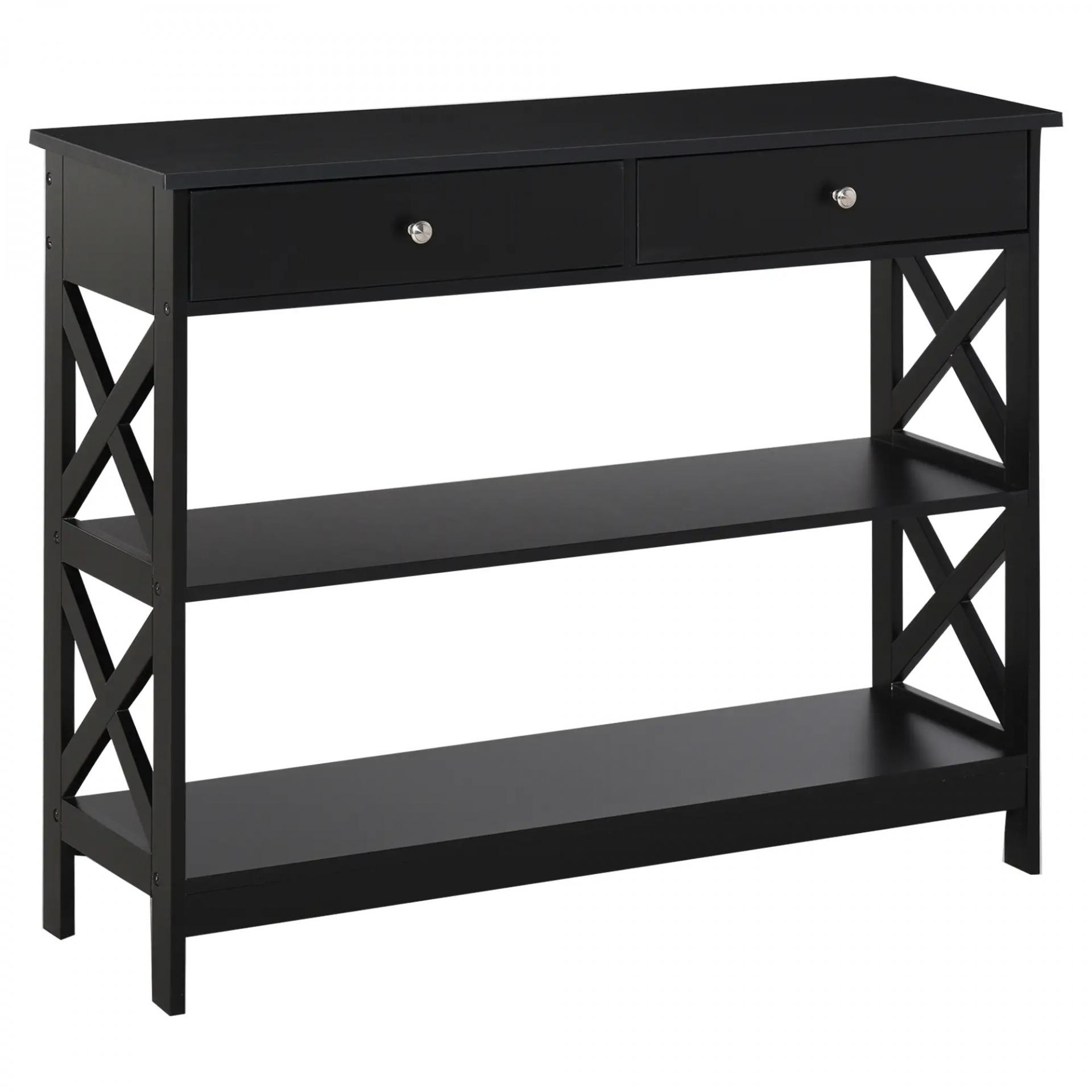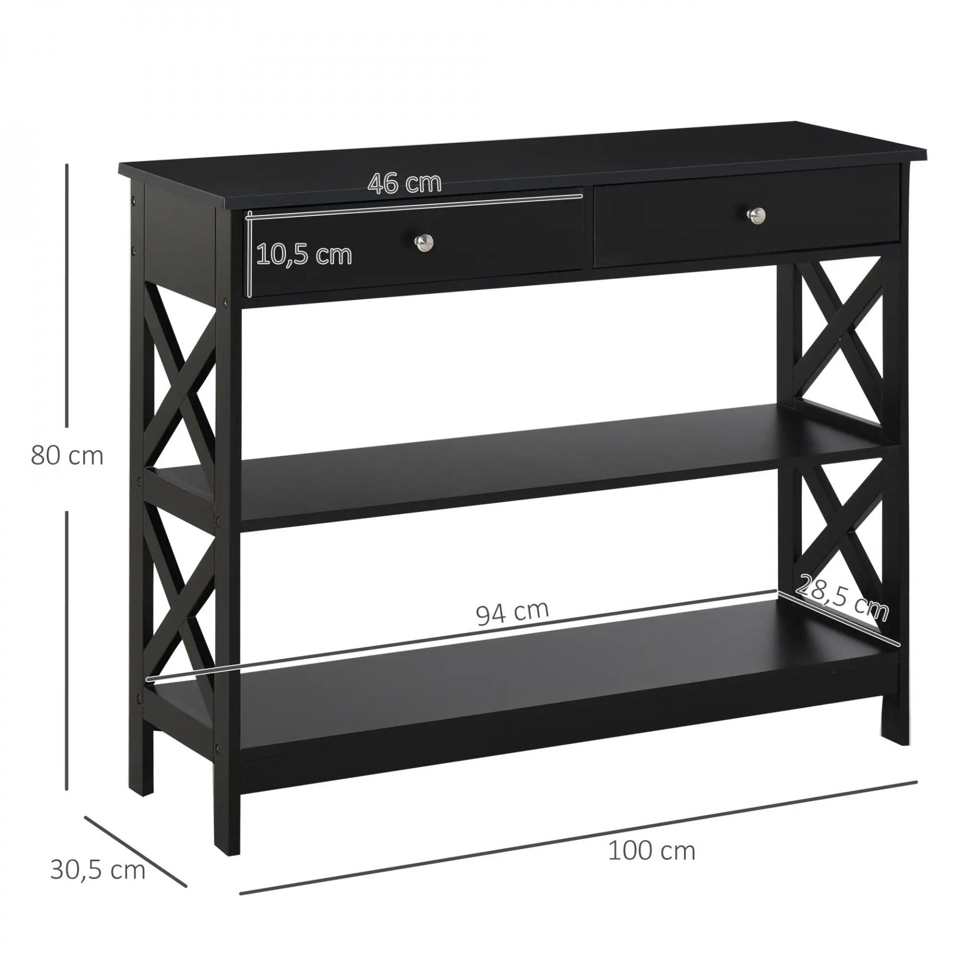 Mesa Consola de Entrada Recibidor con 2 Cajones y 2 Estantes Inferiores Mueble Moderno Base Elevada Antivuelco 100x30,5x80 cm Negro