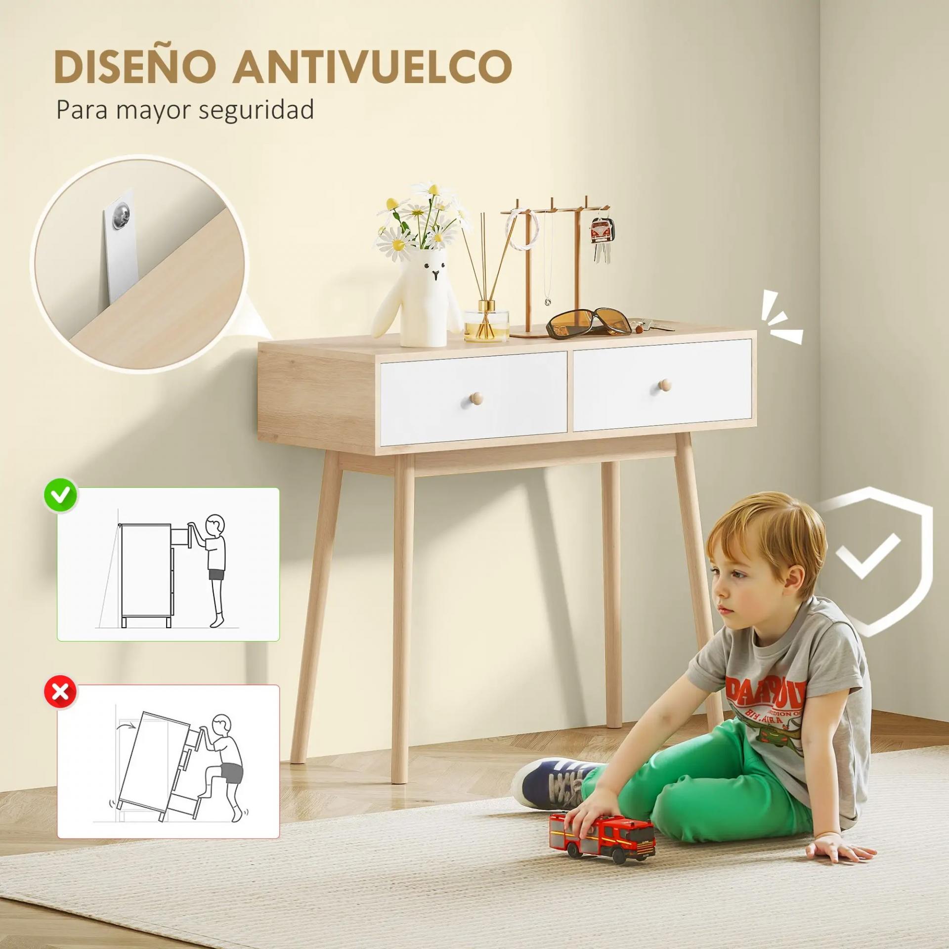 CAJONES DE ALMACENAMIENTO PRÁCTICOS: Con dos amplios cajones, esta mesa consola ofrece un espacio ideal para guardar llaves, carteras y otros objetos esenciales. Su amplia superficie permite colocar plantas, decoraciones o fotos familiares con estilo