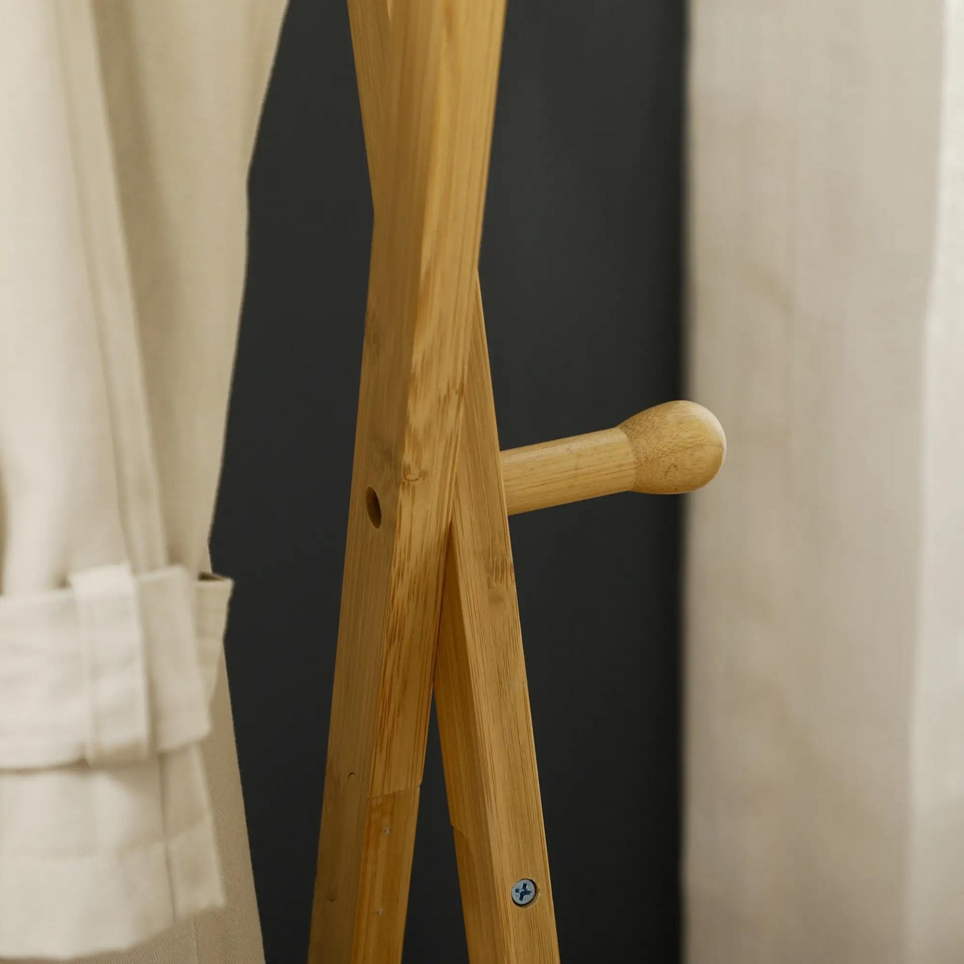- RESISTENTE Y SEGURO: Fabricado con estructura de bambú natural con pintura ecológica, este colgador es resistente a la humedad e ideal para un uso prolongado. Los laterales en forma de X, además de darle un toque distintivo, también le proporcionan mayor estabilidad