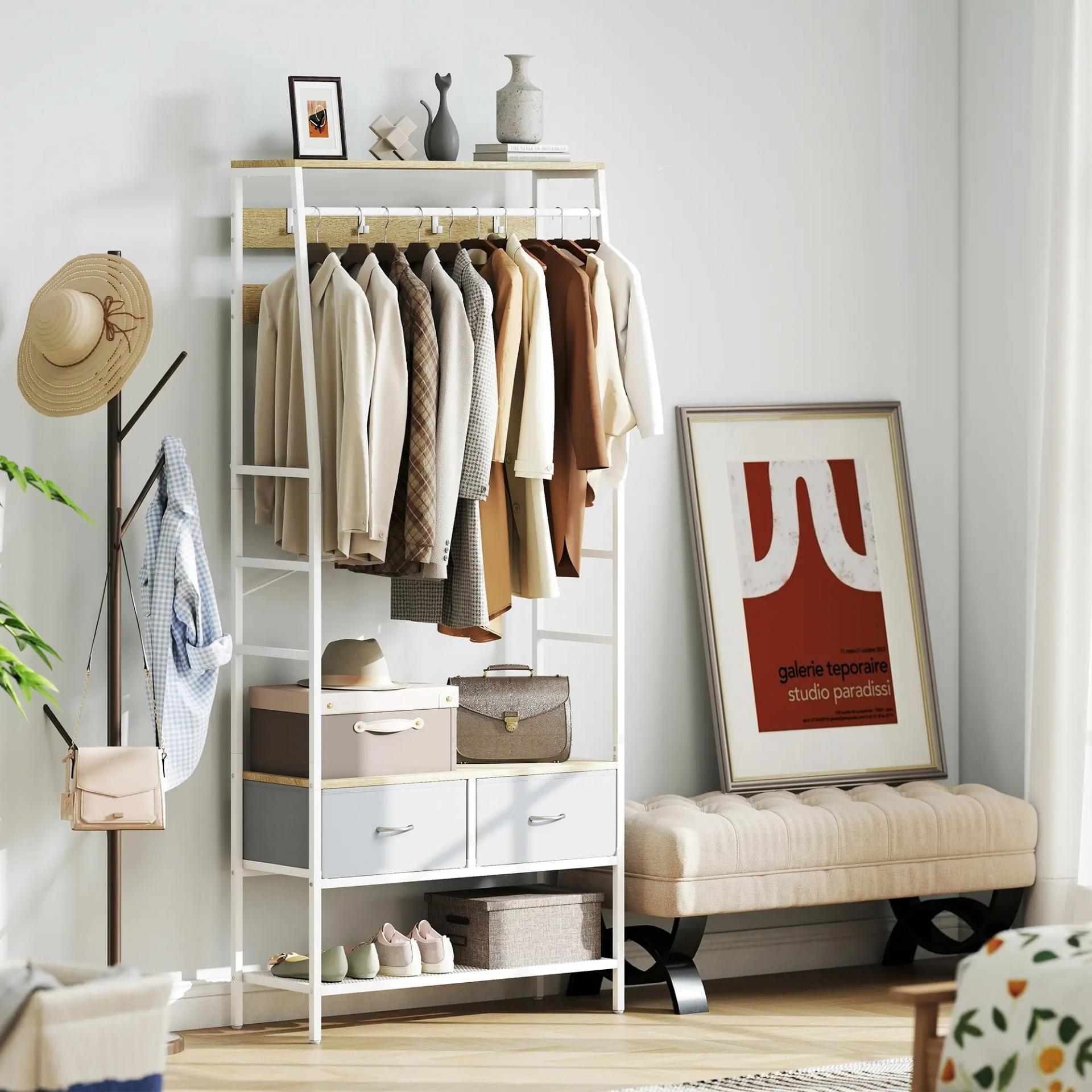 - ORGANIZA SIN ESFUERZO: Guarda los zapatos en la parte inferior, cuelga prendas en los 8 ganchos y la barra, y usa los cajones y la repisa superior para accesorios y decoración. Tenlo todo a mano sin complicaciones