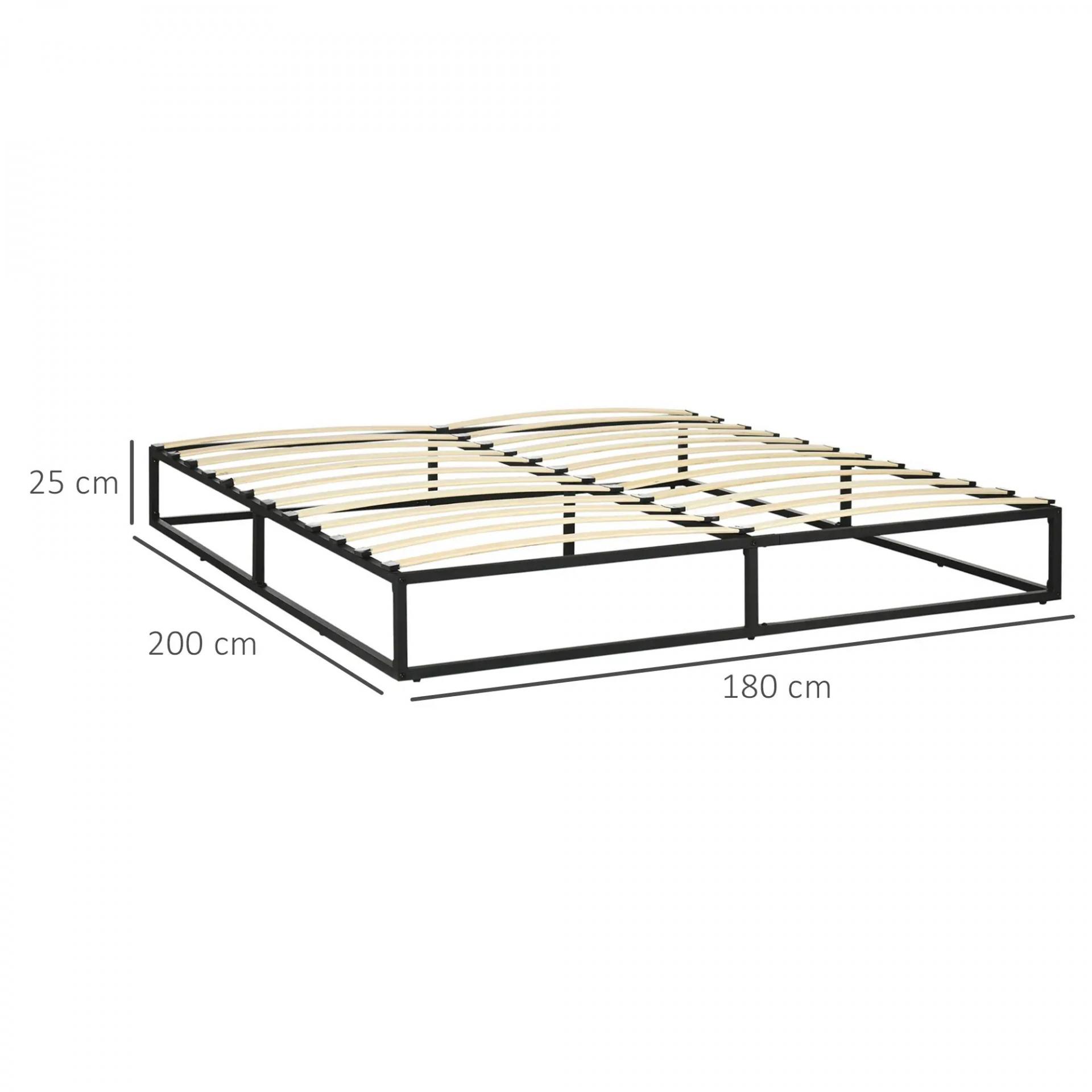 Marco de Cama de 180 cm Estructura de Cama de Acero con Somier de Listones de Madera Contrachapada 180x200x25 cm Negro