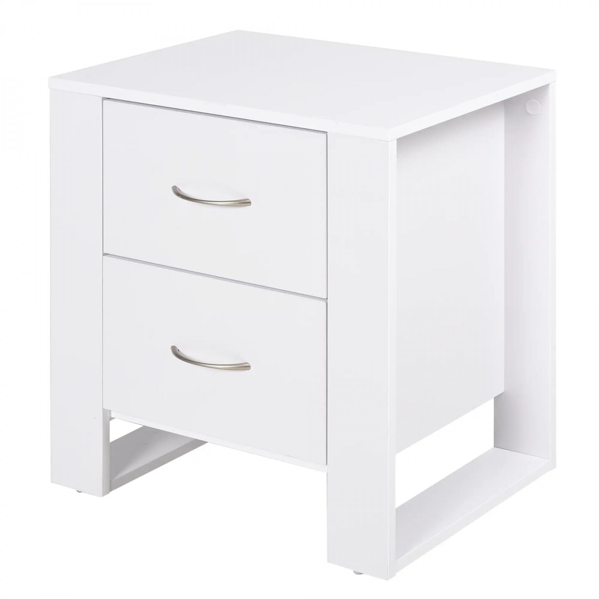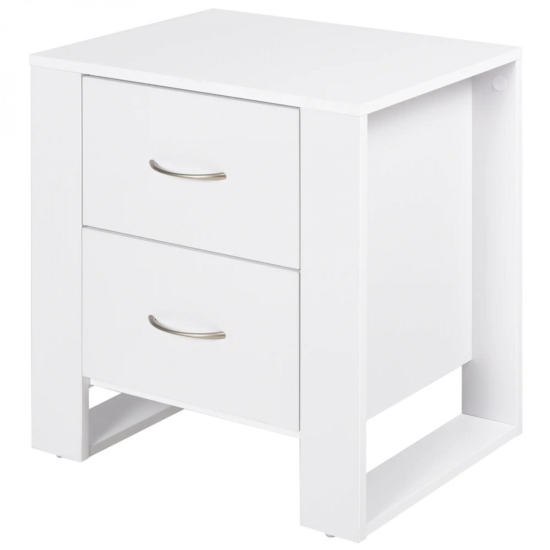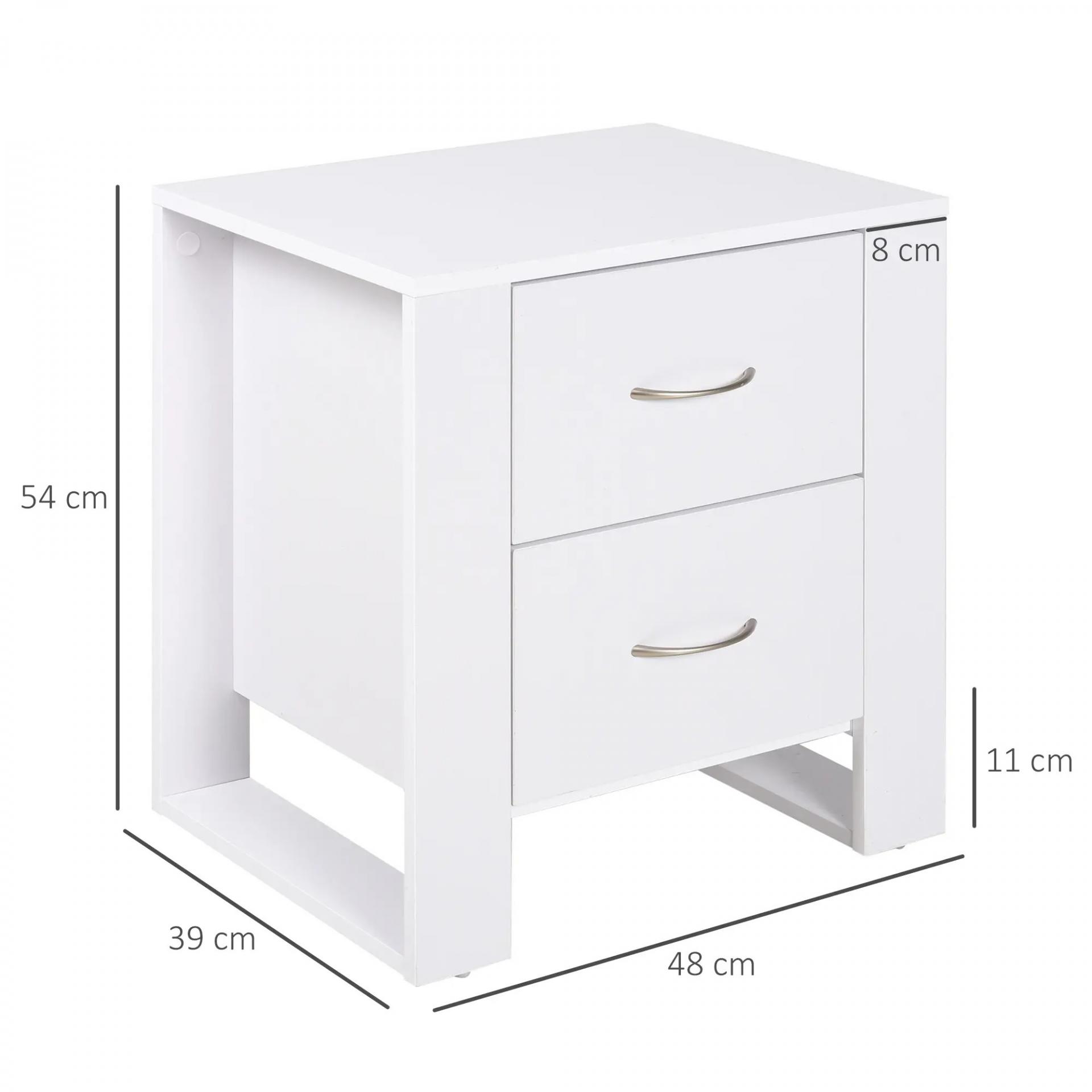 Mesita de Noche con 2 Cajones Patas y Base Elevada para Dormitorio Mesa Lateral para Sala de Estar Estilo Moderno 48x39x54 cm Blanco