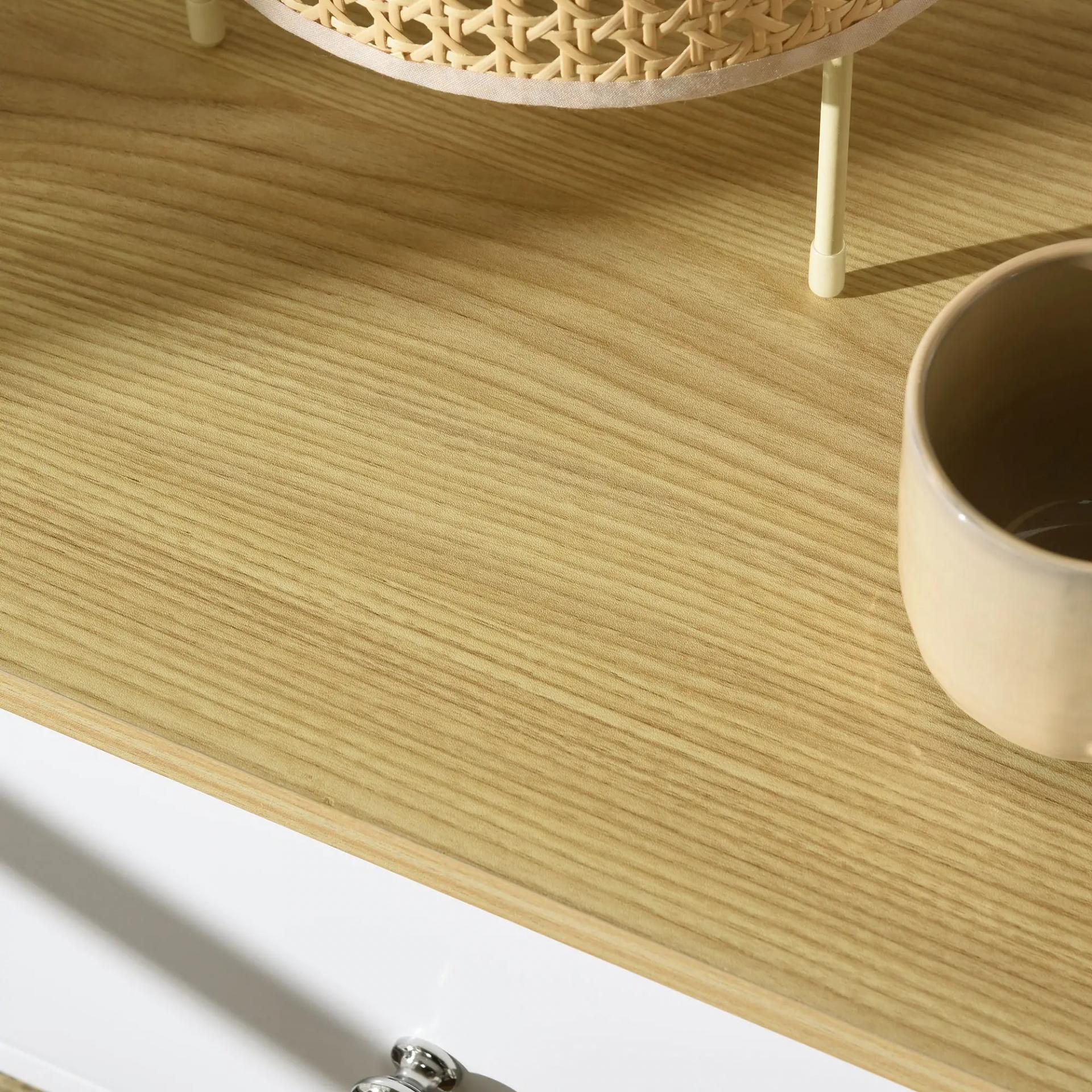 MULTIFUNCIONAL: Se puede utilizar como mesa auxiliar, mesita de noche o mesa junto al sofá. Gracias a su elegante diseño y combinación de colores en blanco y madera, combinará fácilmente con el resto de la decoración y mobiliario de tu hogar