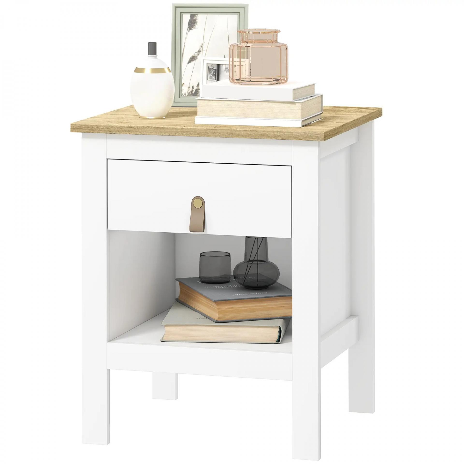 - CREA UN ESPACIO ORDENADO Y FUNCIONAL: Mantén todo lo esencial al alcance. Coloca una lámpara o decoraciones en la superficie, guarda tus objetos personales en el cajón y usa el compartimento abierto para libros o adornos favoritos