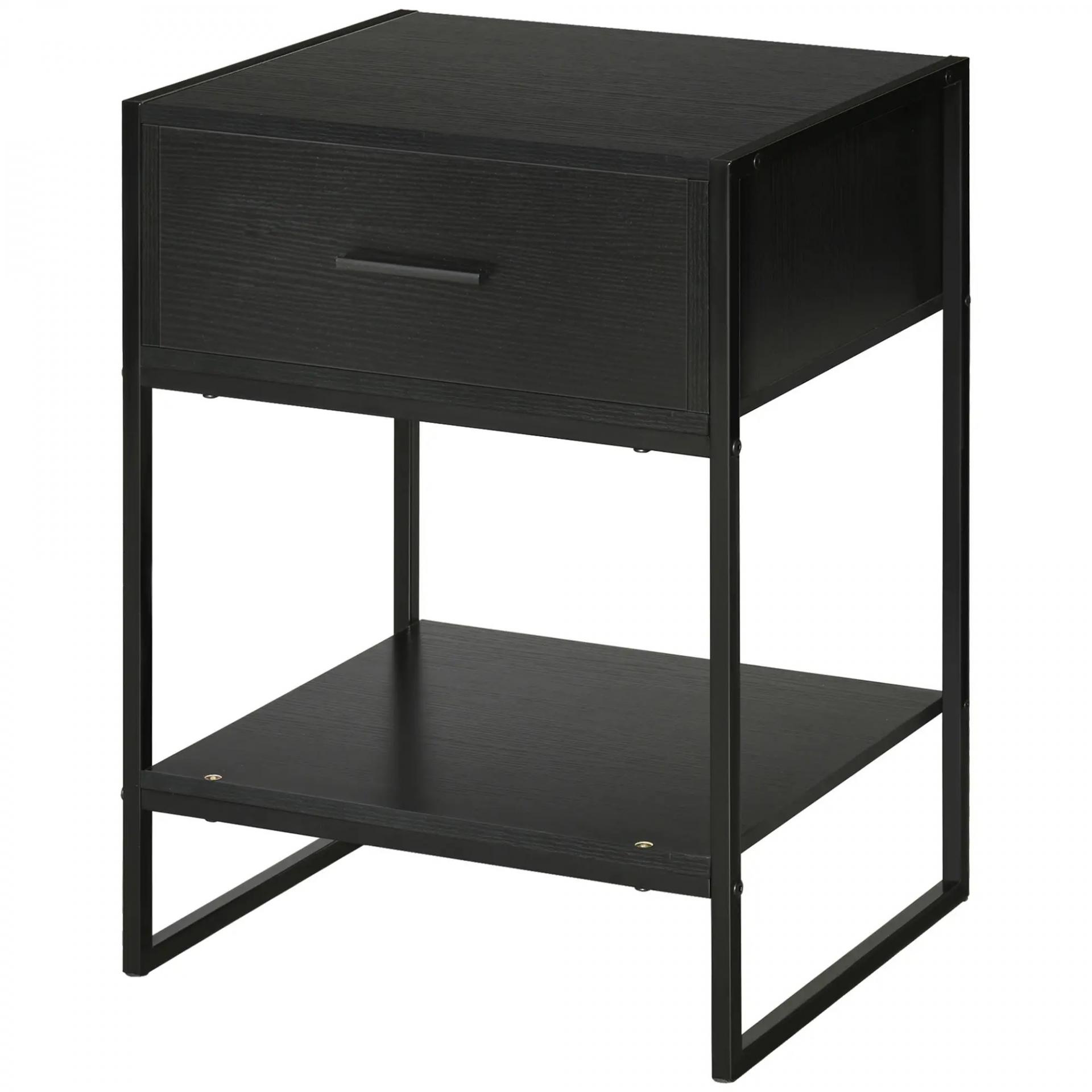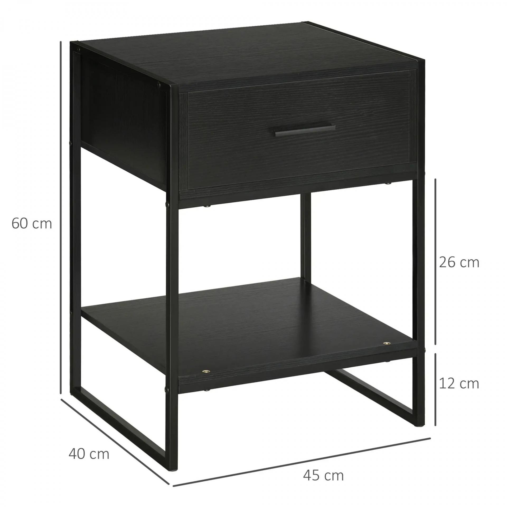 Mesilla de Noche Mesa Auxiliar con 1 Cajón y Estante de Almacenamiento para Dormitorio Salón Oficina 45x40x60 cm Negro