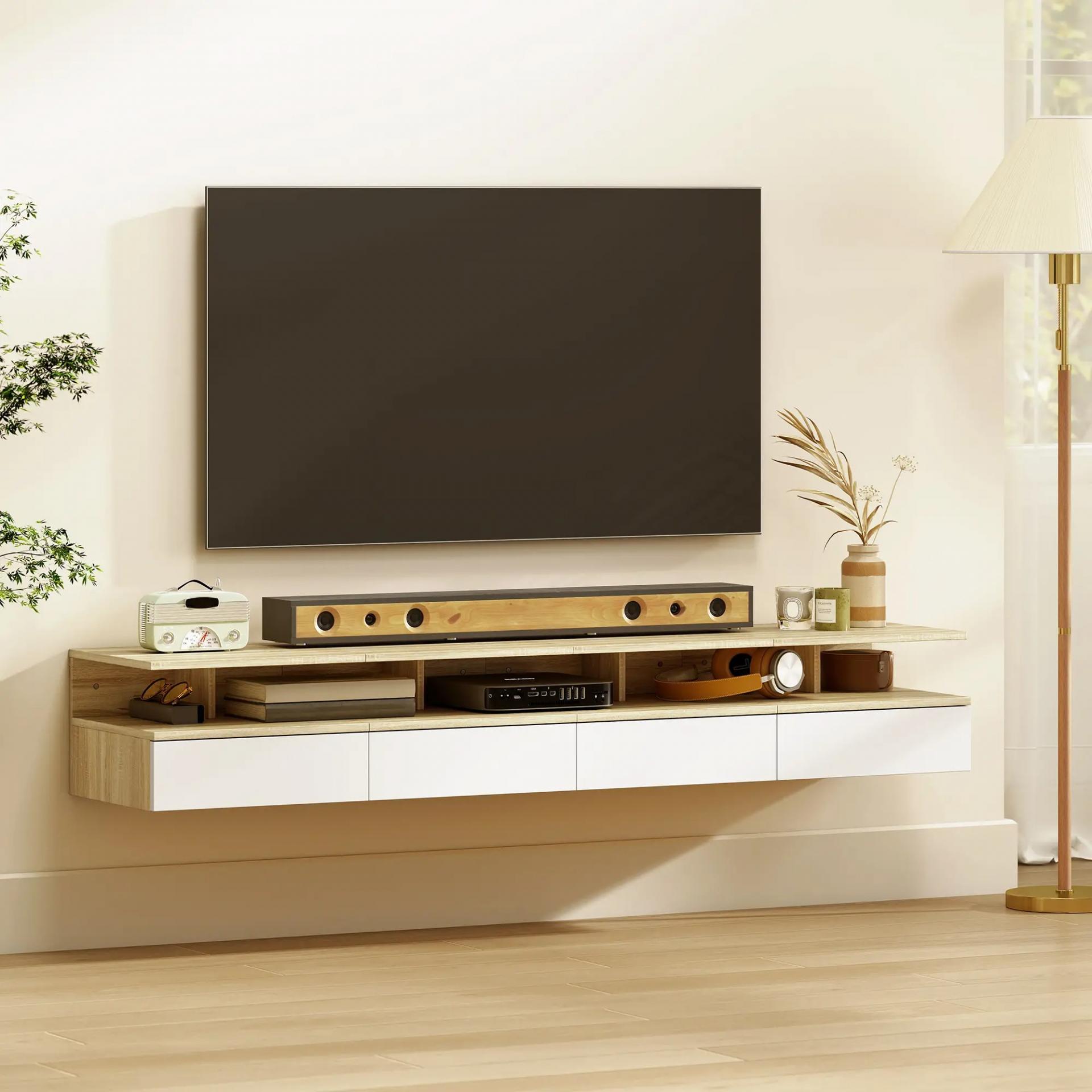 - DISEÑO FLOTANTE QUE AHORRA ESPACIO: Al instalarse en la pared, libera el suelo y crea una sensación visual más ligera. Ideal para dormitorios pequeños, facilita la limpieza y aporta un estilo actual y ordenado
