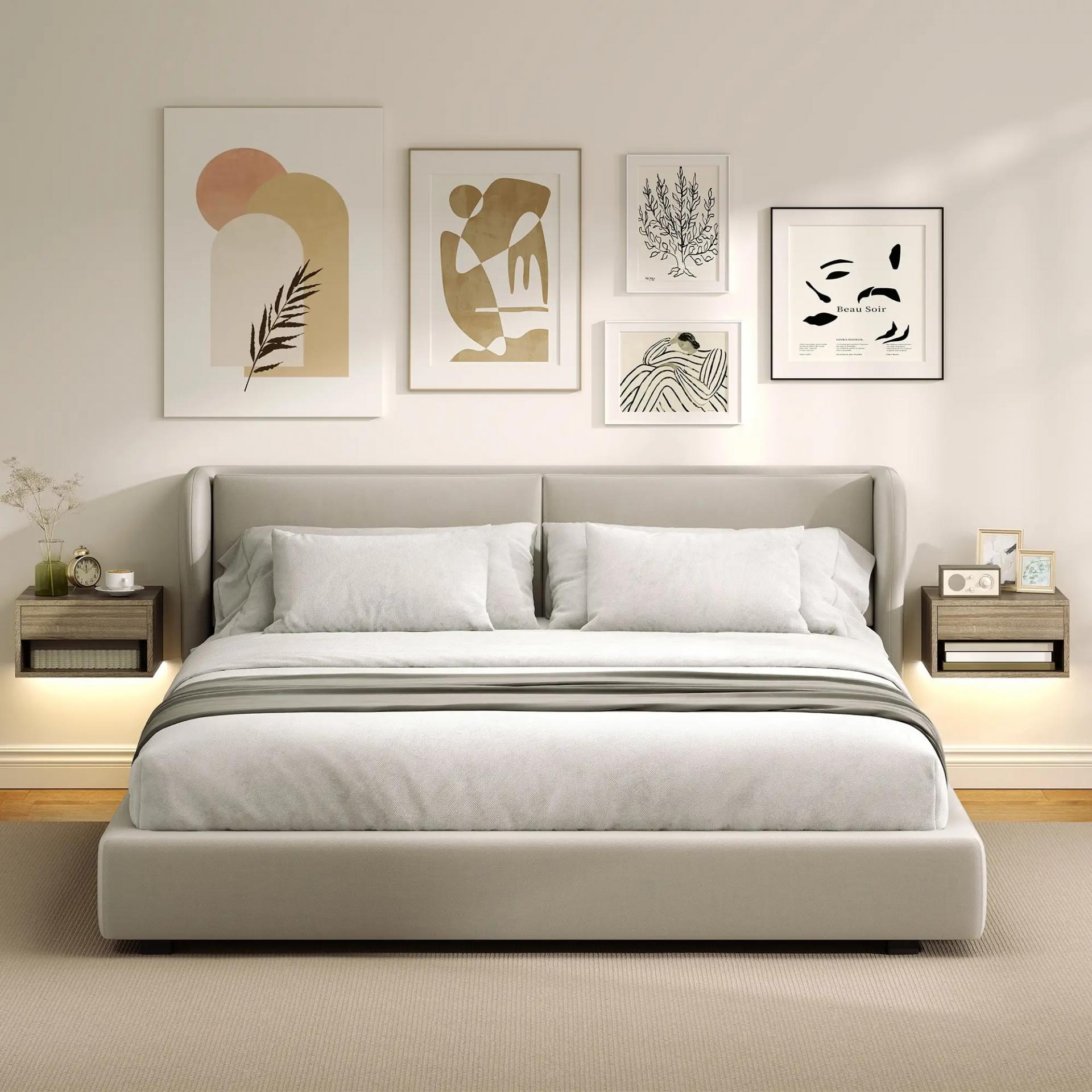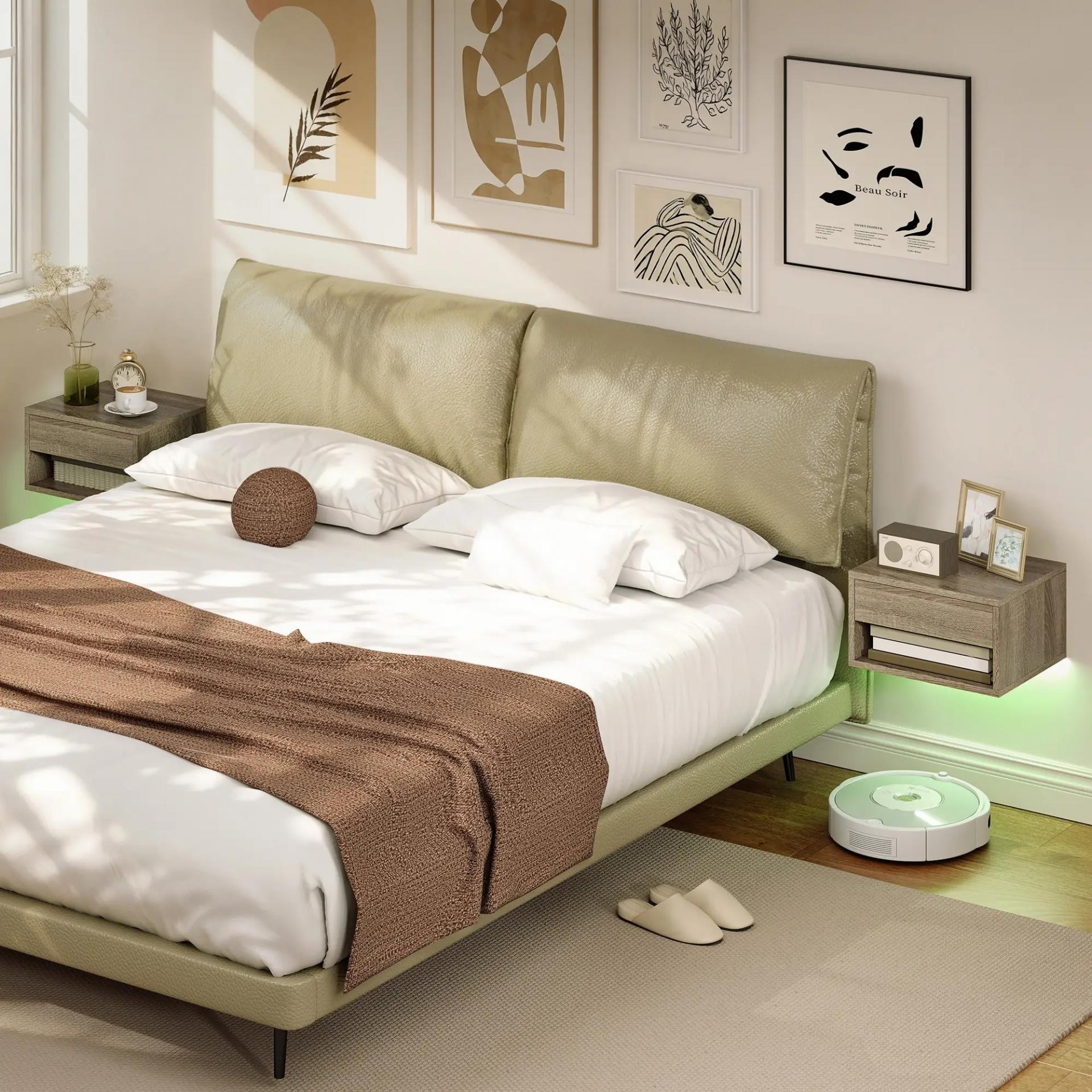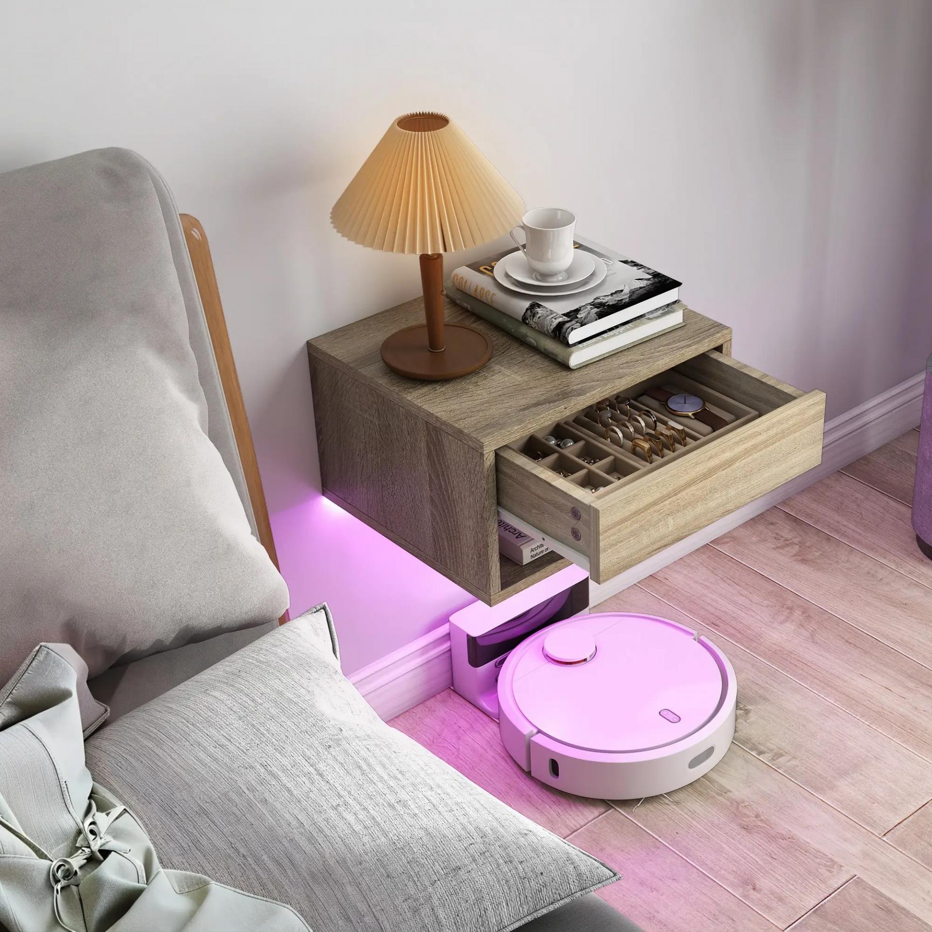 - DISEÑO SUSPENDIDO: Las mesillas de noche para dormitorio no ocupan espacio en el suelo, aportando un estilo ligero y minimalista. Facilitan la limpieza diaria y permiten el acceso de aspiradores robot, siendo ideales para dormitorios pequeños