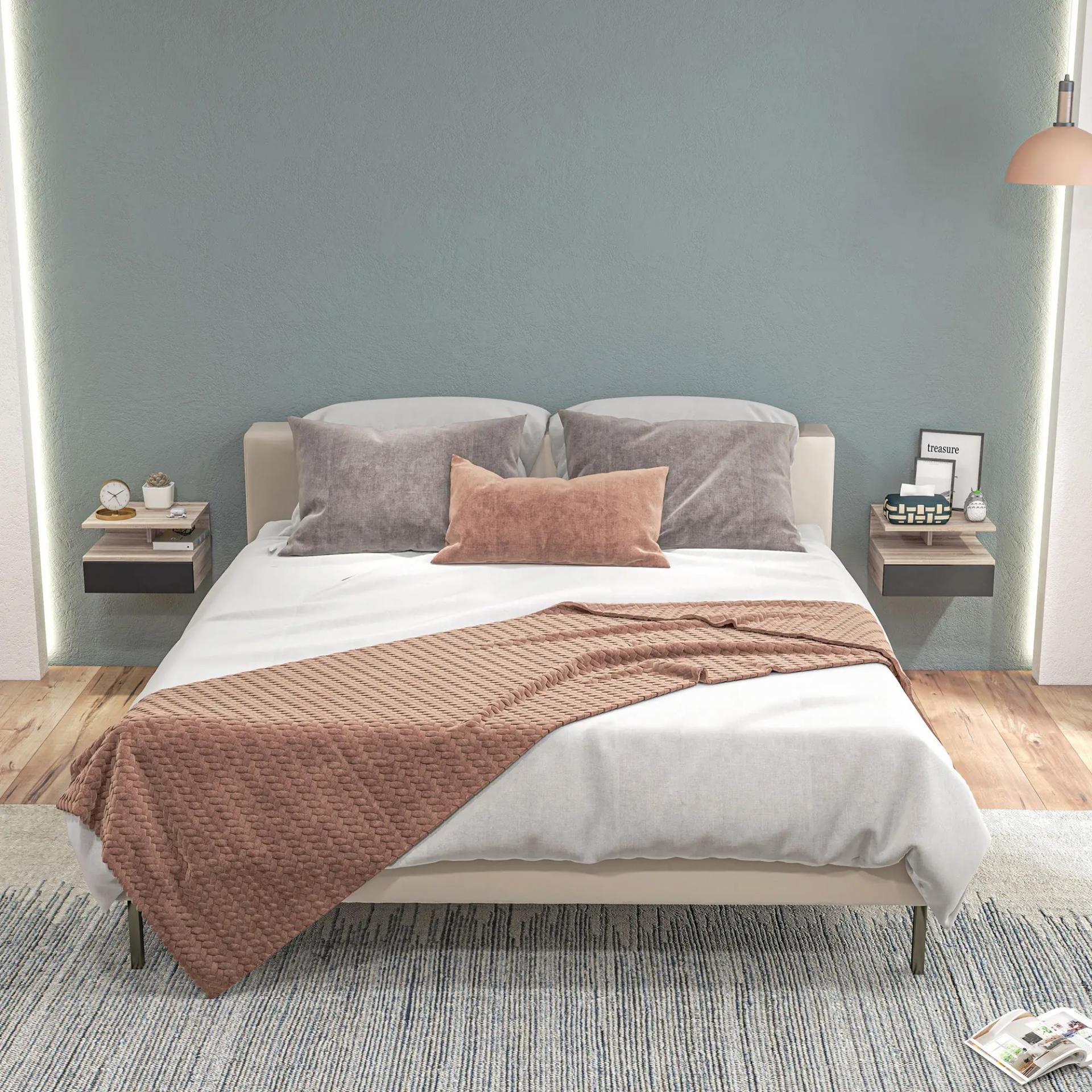 - DISEÑO FLOTANTE QUE AHORRA ESPACIO: Al instalarse en la pared, libera el suelo y crea una sensación visual más ligera. Ideal para dormitorios pequeños, facilita la limpieza y aporta un estilo actual y ordenado