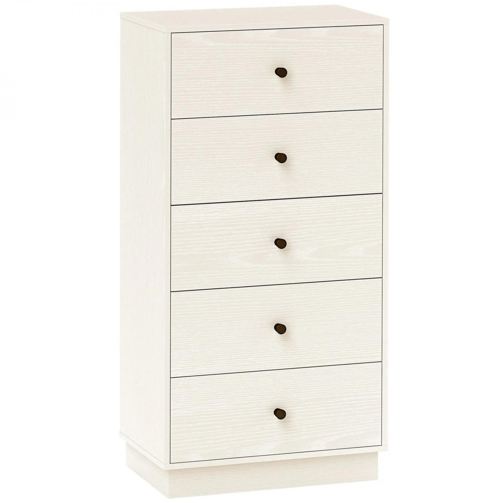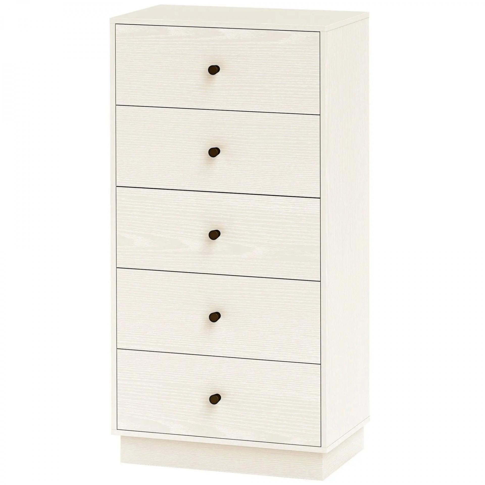 Cómoda de 5 Cajones Estrecha y Alta Mueble Auxiliar para Dormitorio o Pasillo con Tiradores Redondos 47x29x95 cm Beige