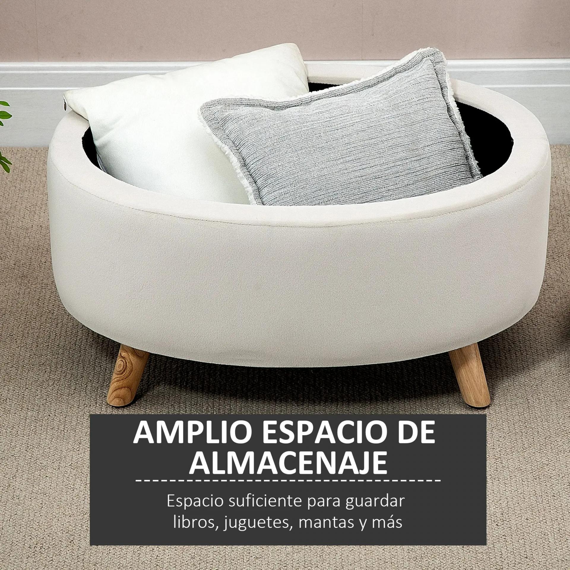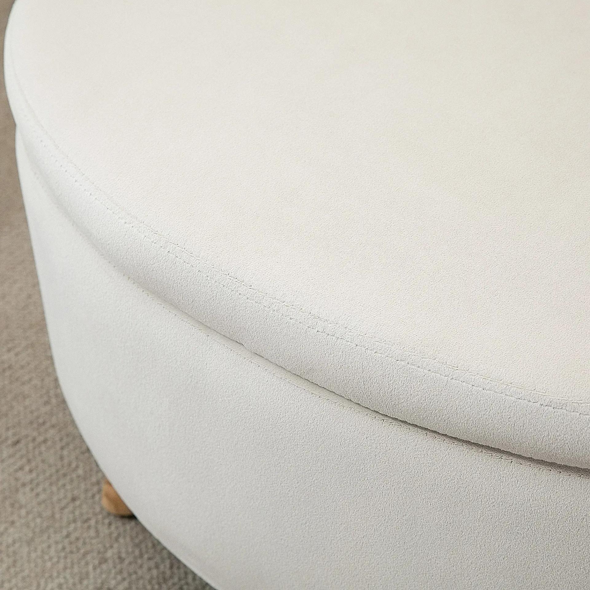 DISEÑO MODERNO Y ACOGEDOR: Puff almacenaje con forma ovalada, tapizado en suave tela beige y patas de madera natural, perfecto para crear un rincón cálido en entrada, dormitorio o sala de estar