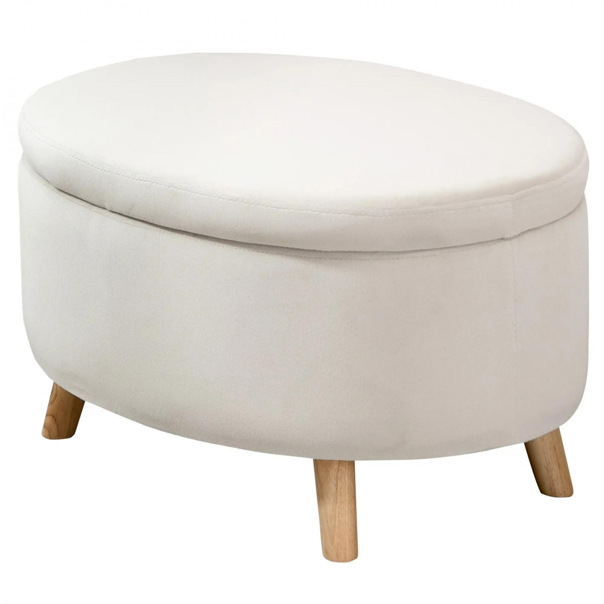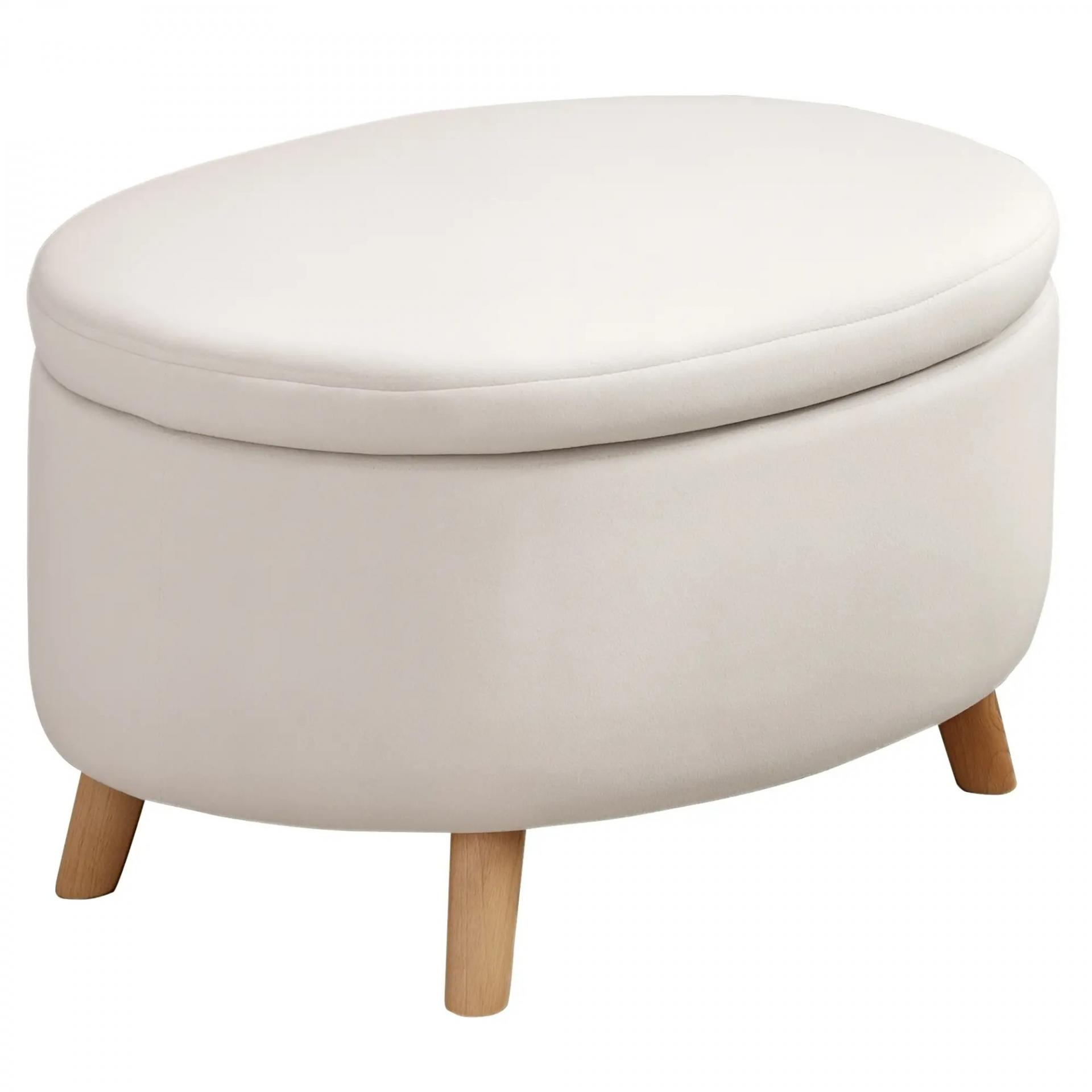 Puff Almacenaje Ovalado, Banco Almacenaje, 71x51,5x42 cm, Tapizado en Terciopelo, con Patas de Madera Maciza, Carga 120 kg, para Sala de Estar, Dormitorio, Entrada, Beige