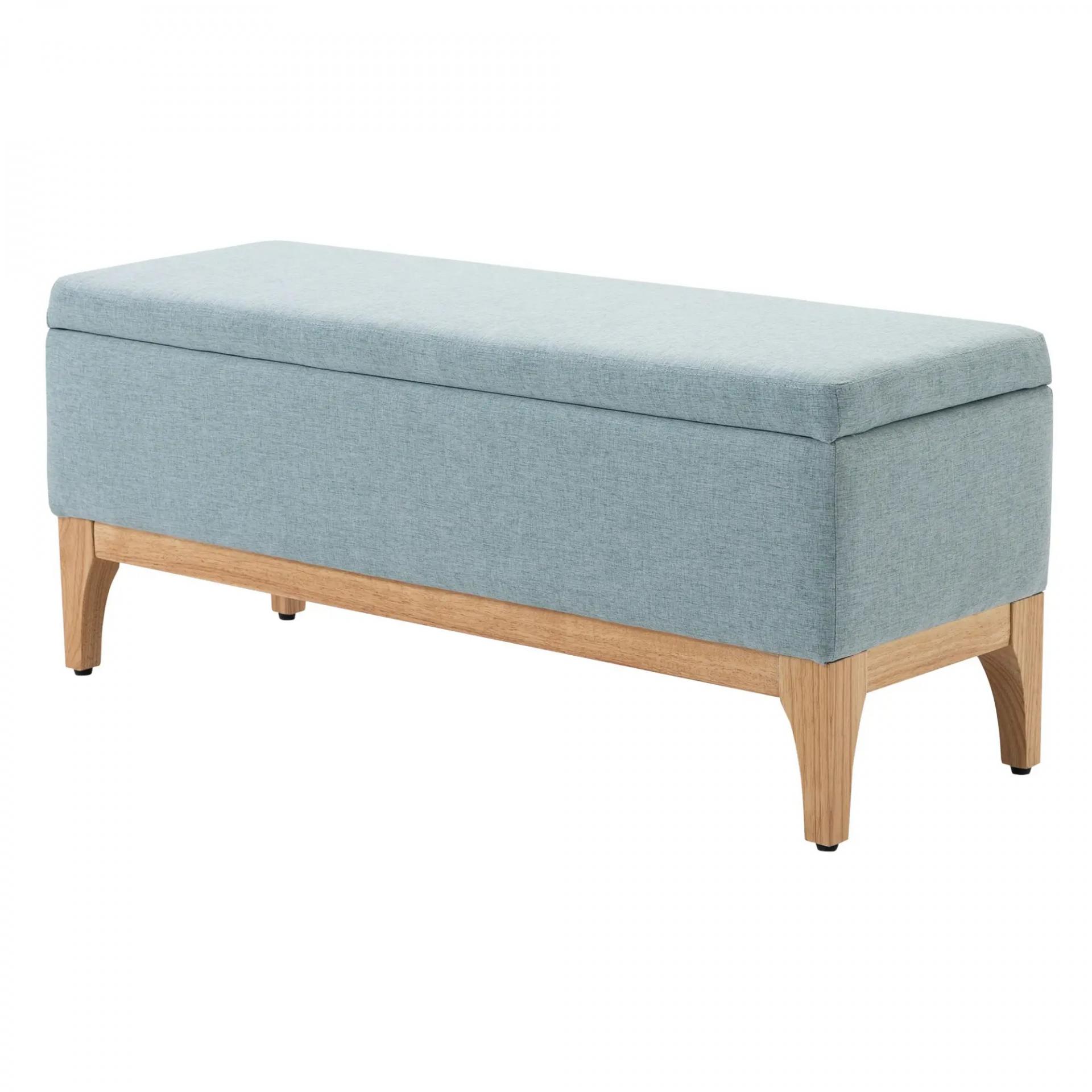 Baúl de Almacenaje para Dormitorio 72L Tapizado en Lino con Patas de Madera 110x39x45 cm Verde Claro