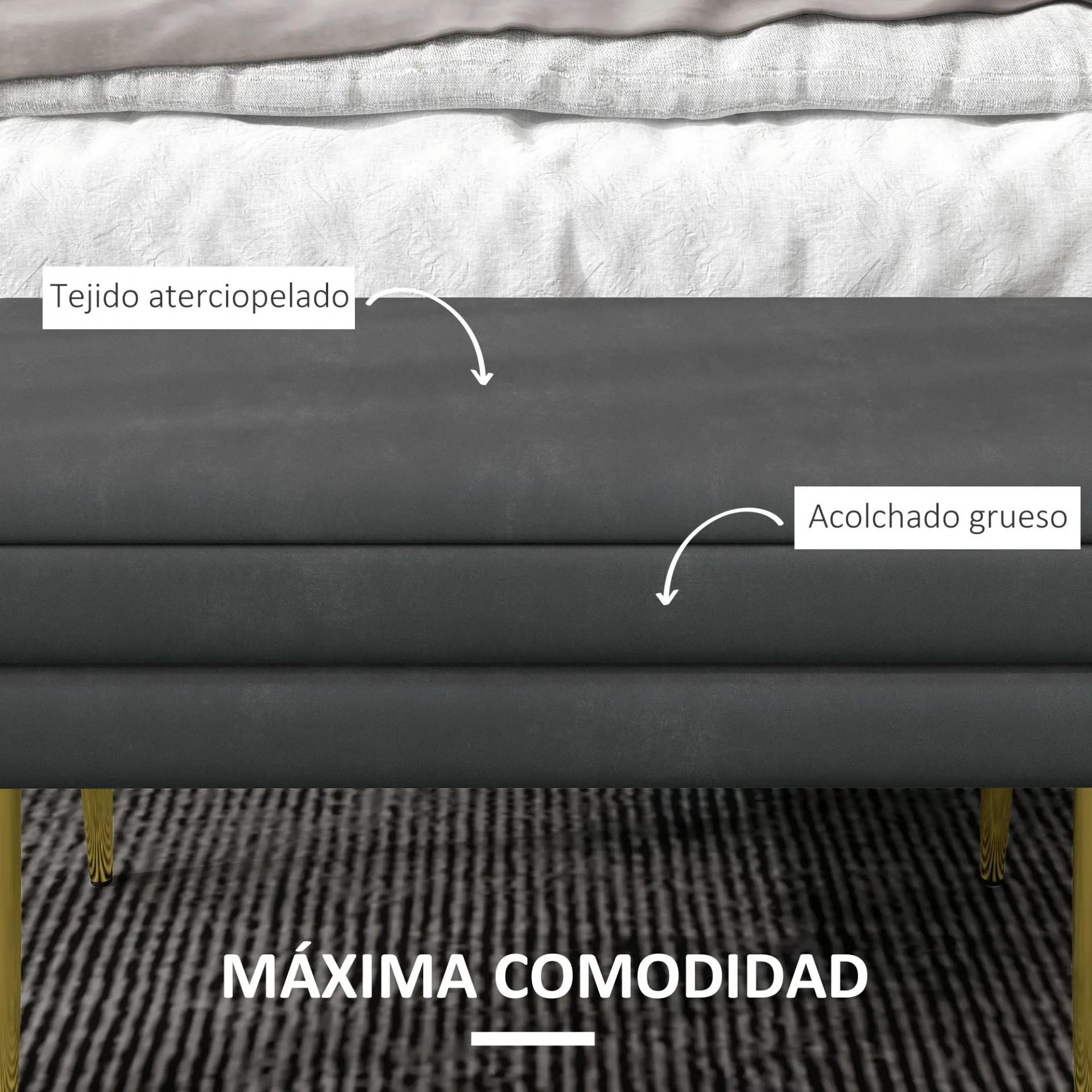 Baúl de Almacenaje para Dormitorio 30L Tapizado en Terciopelo con Patas de Acero 79,5x37,5x43 cm Gris Oscuro