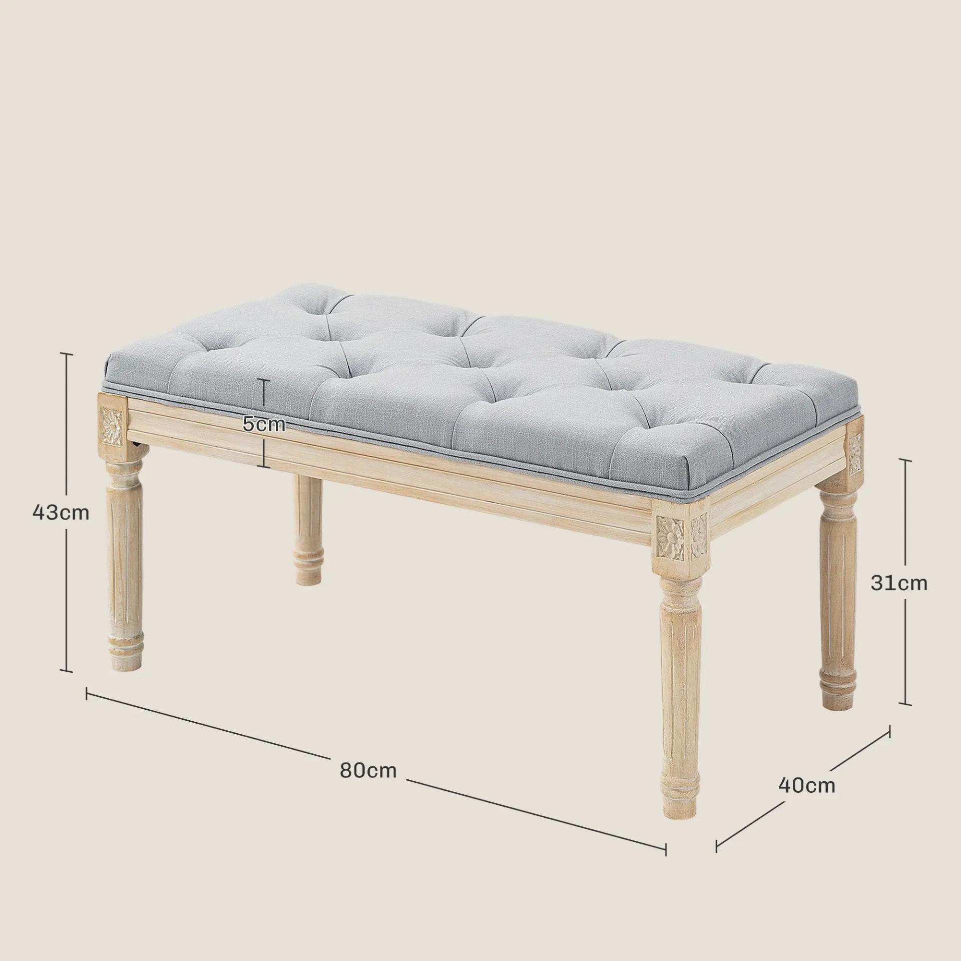 Banco Pie de Cama Tapizado en Lino Sintético con Patas de Madera y Asiento Acolchado Estilo Vintage Gris Claro