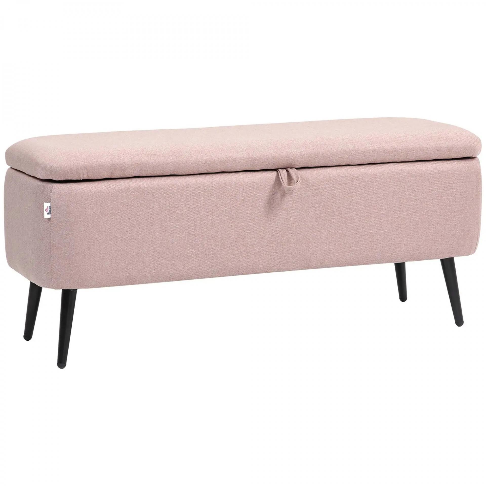 Banco de Almacenamiento con Tapa Abatible y Patas de Acero para Dormitorio Salón Entrada 101x38,5x44,5cm Rosa