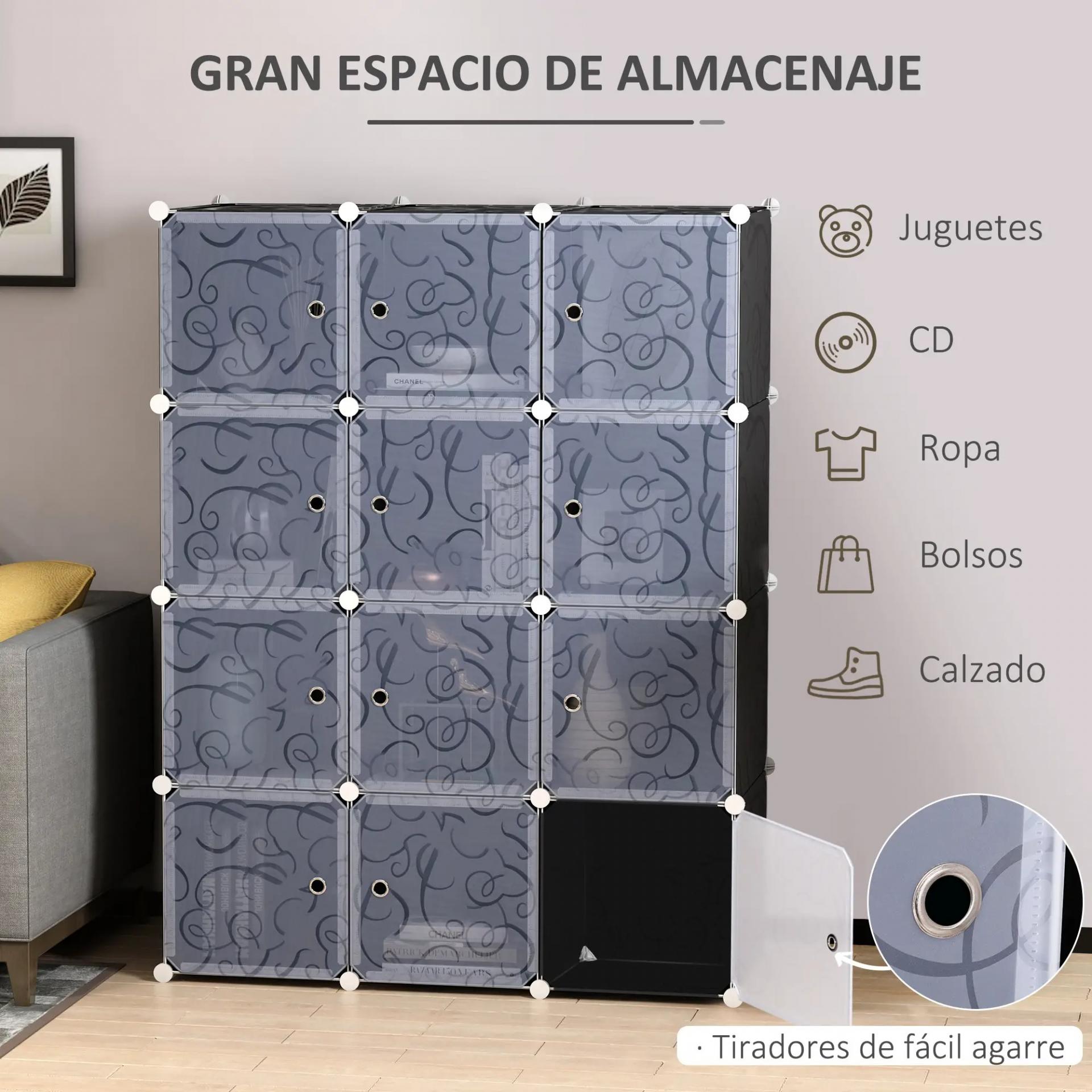 Armario Modular Plástico Estantería 12 Cubos con Puertas para Almacenamiento de Ropa Armario Ropero Organizador para Almacenamiento Juguetes y Libros Montaje en Bricolaje