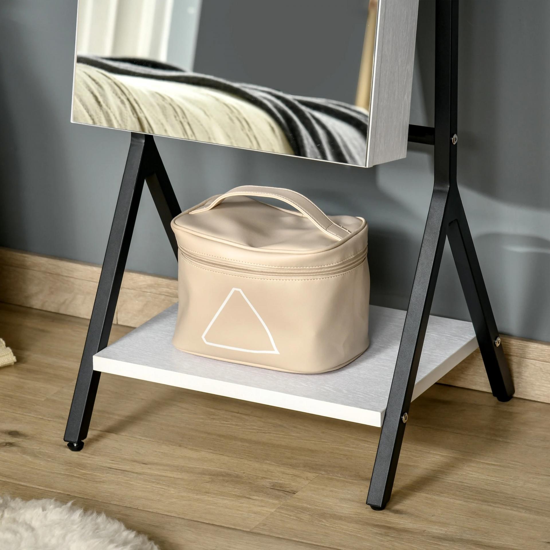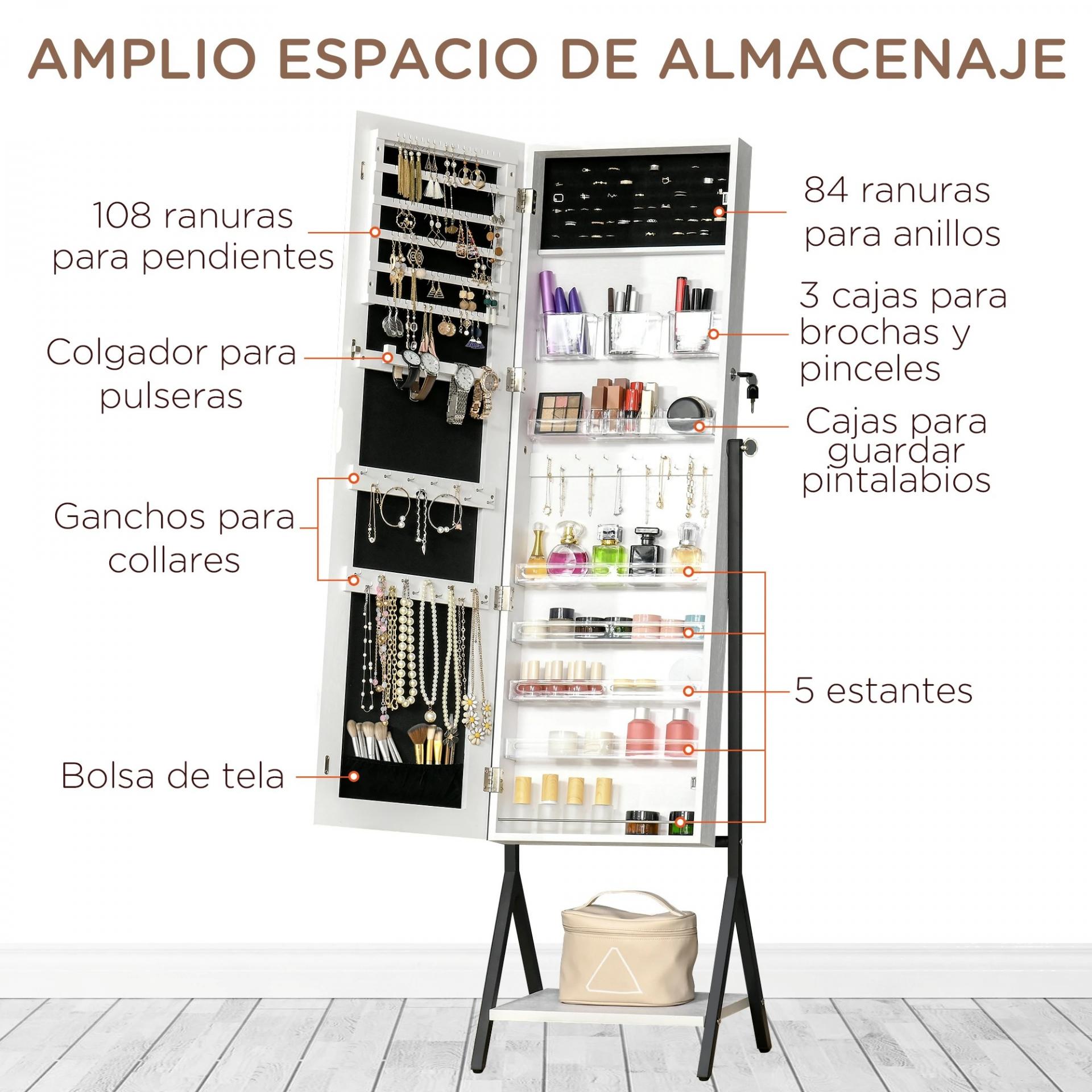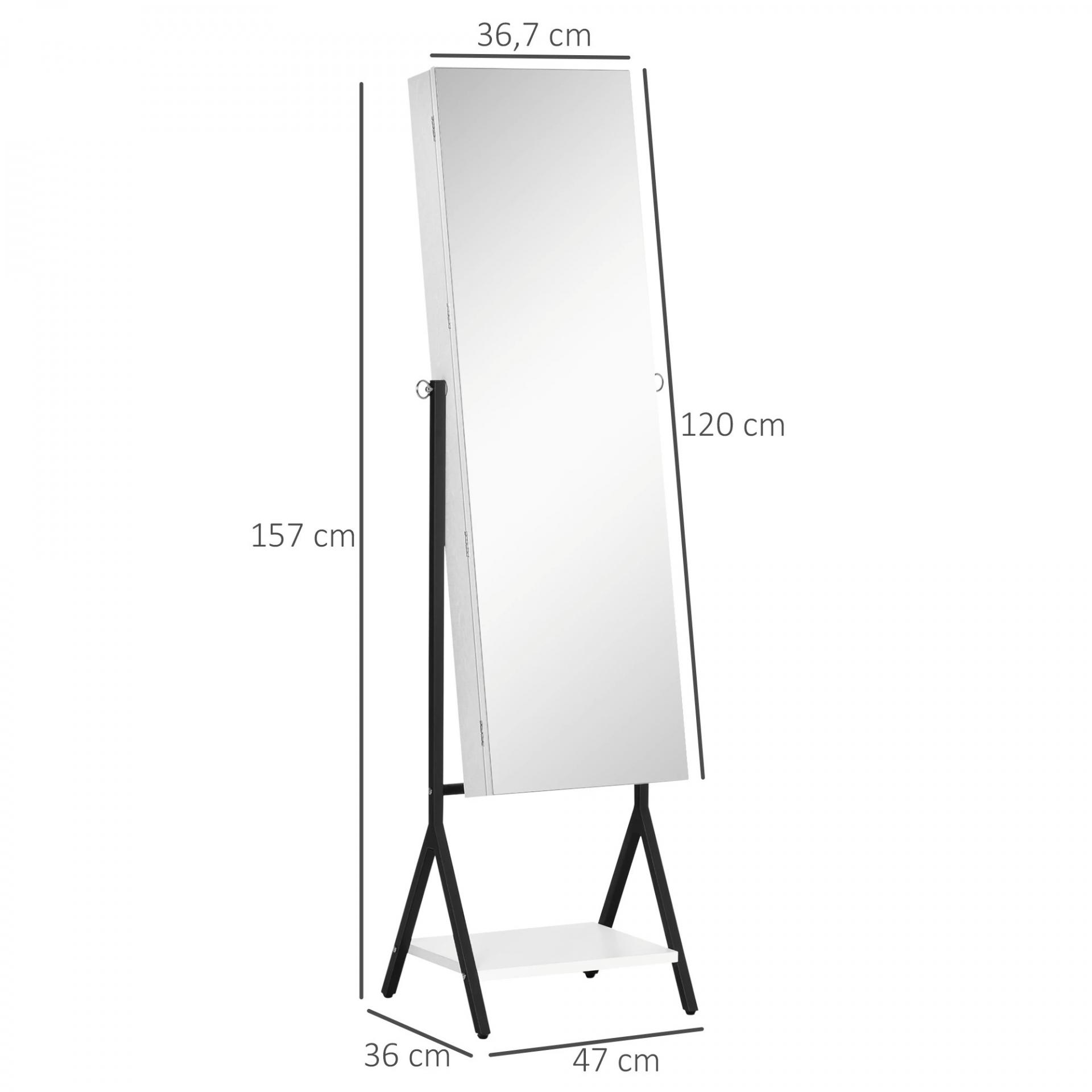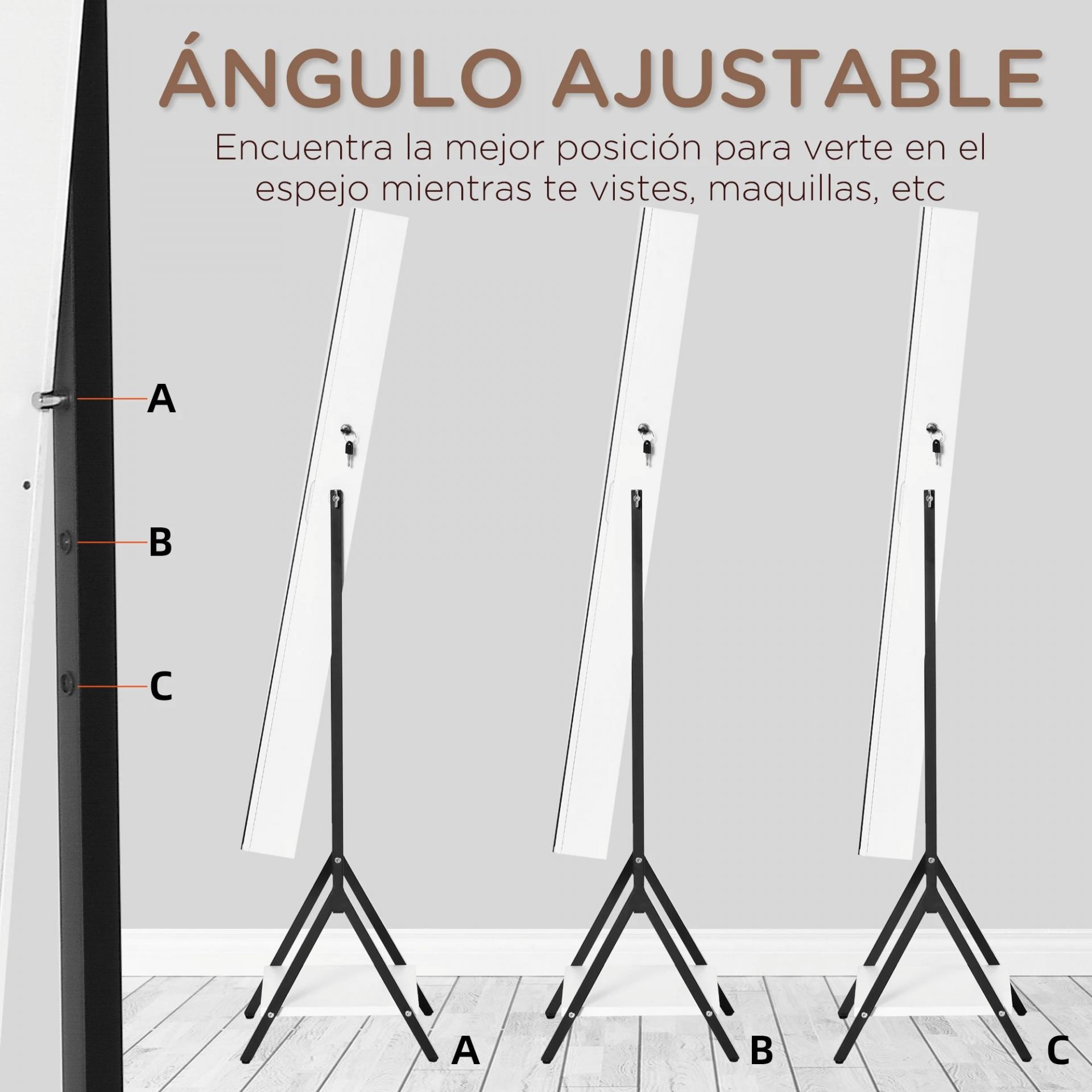 JOYERO DE PIE CON ESPEJO: Este joyero con espejo de cuerpo entero con soporte de HOMCOM es la manera perfecta de organizar todas tus joyas y accesorios. El espejo tiene 3 ángulos ajustables para adaptarse a Tus necesidades