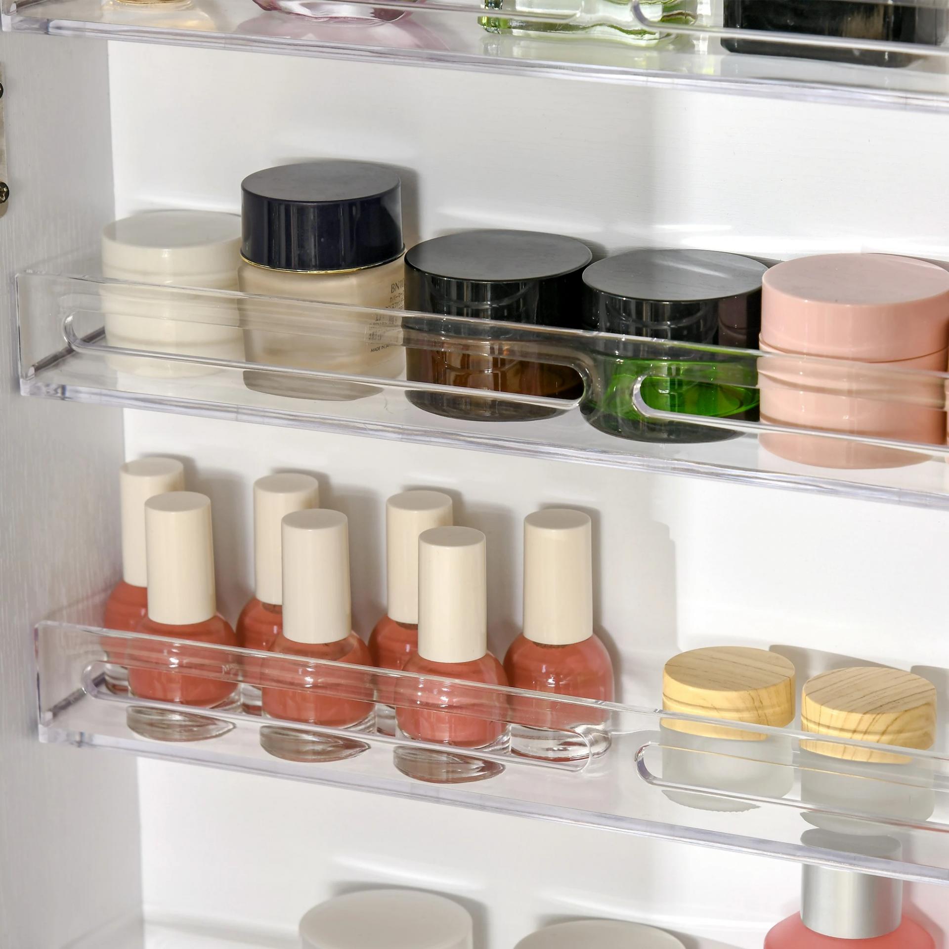- GRAN ESPACIO DE ALMACENAMIENTO: Tiene un amplio espacio para mantener todo en orden. Tiene 36 ganchos para collares, 1 bolsita de tela, 84 porta anillos, 3 cajas transparentes, varios estantes y un estante en la parte inferior