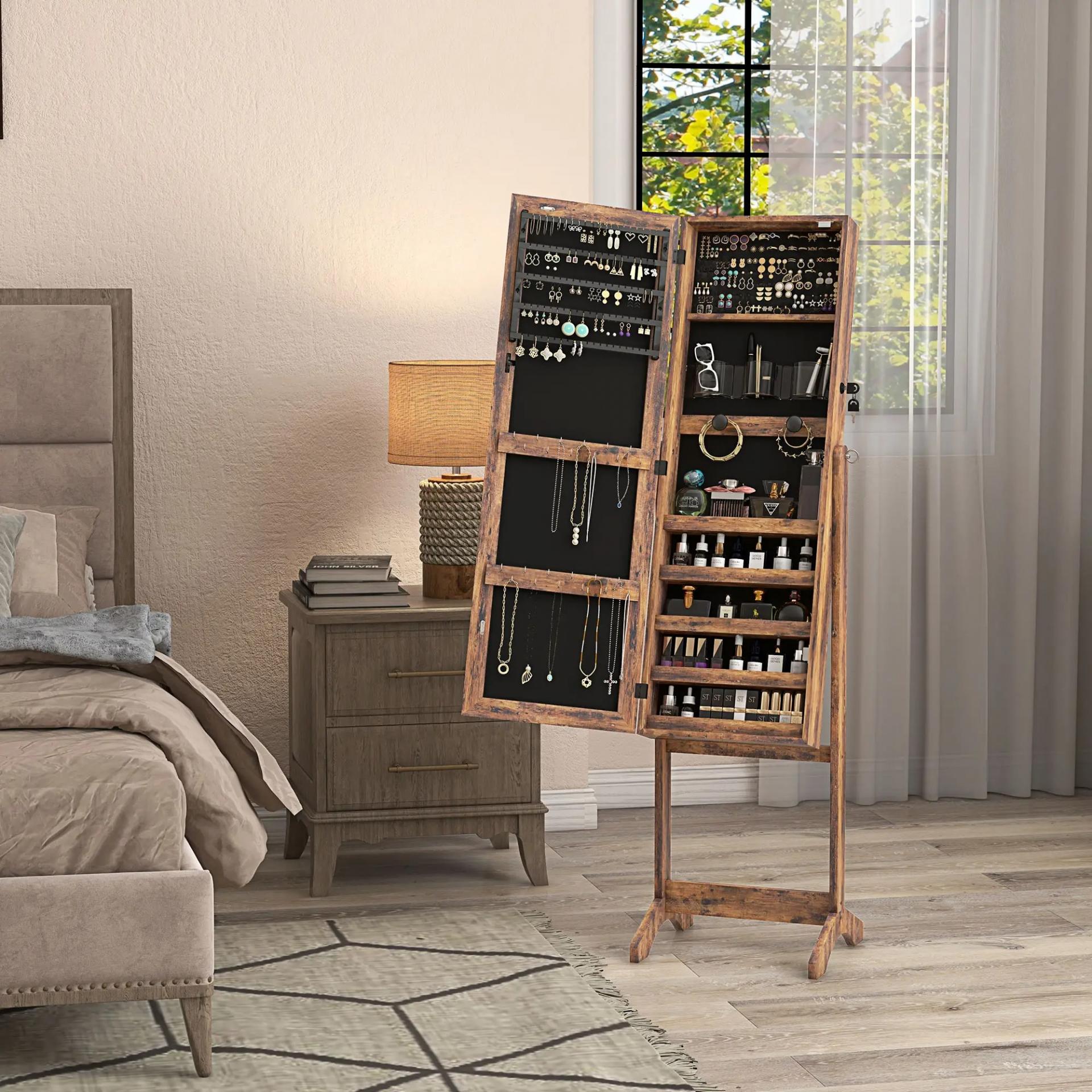 - CIERRE CON LLAVE: La puerta con espejo joyero de pie se cierra con llave (2 incluidas) y cuenta con cierre magnético, protegiendo tus accesorios de niños, invitados o accesos no deseados