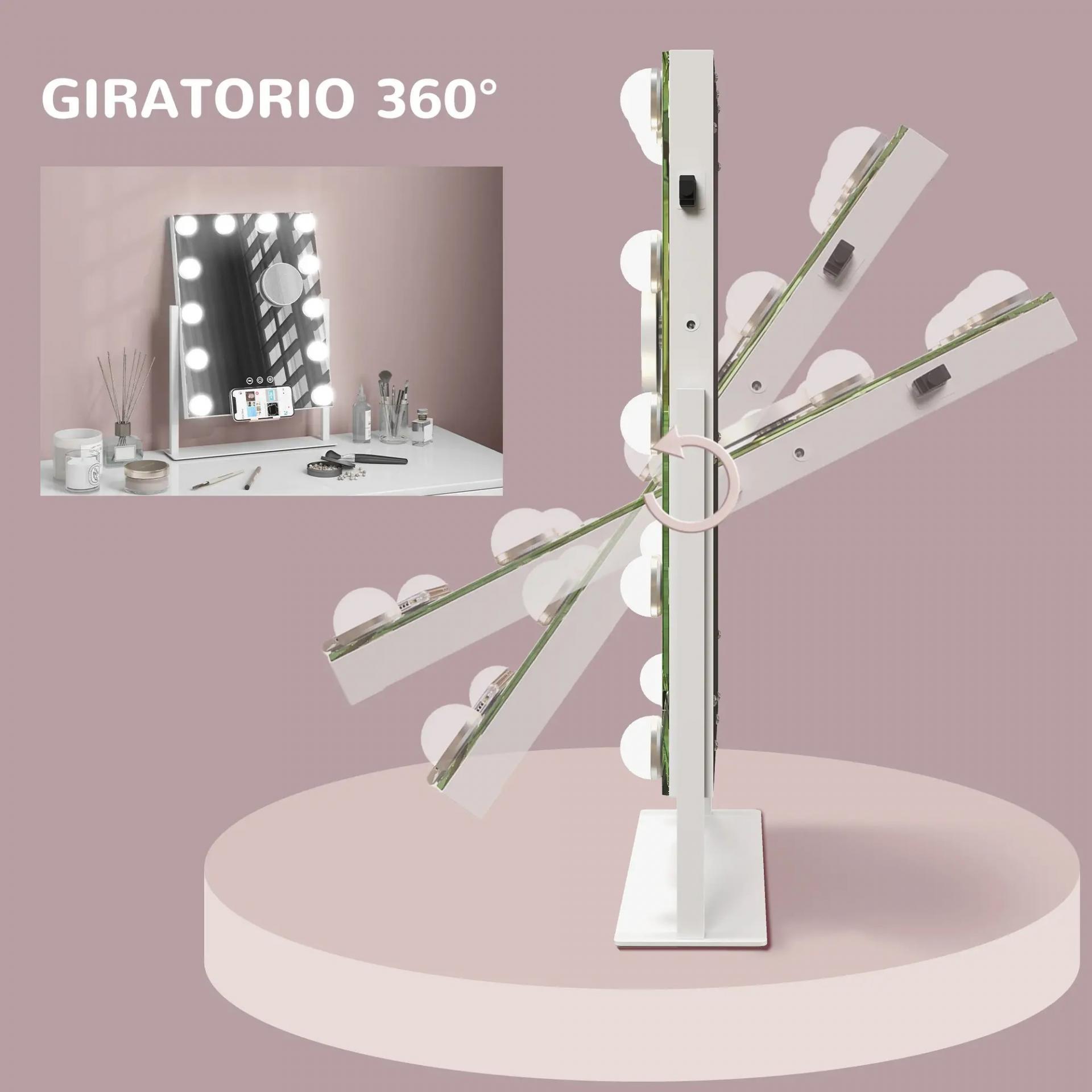 - GIRATORIO Y ESTABLE: El espejo de maquillaje con luz puede girar libremente a cualquier ángulo deseado. Además, cuenta con un robusto marco metálico que añade estabilidad sobre cualquier superficie plana