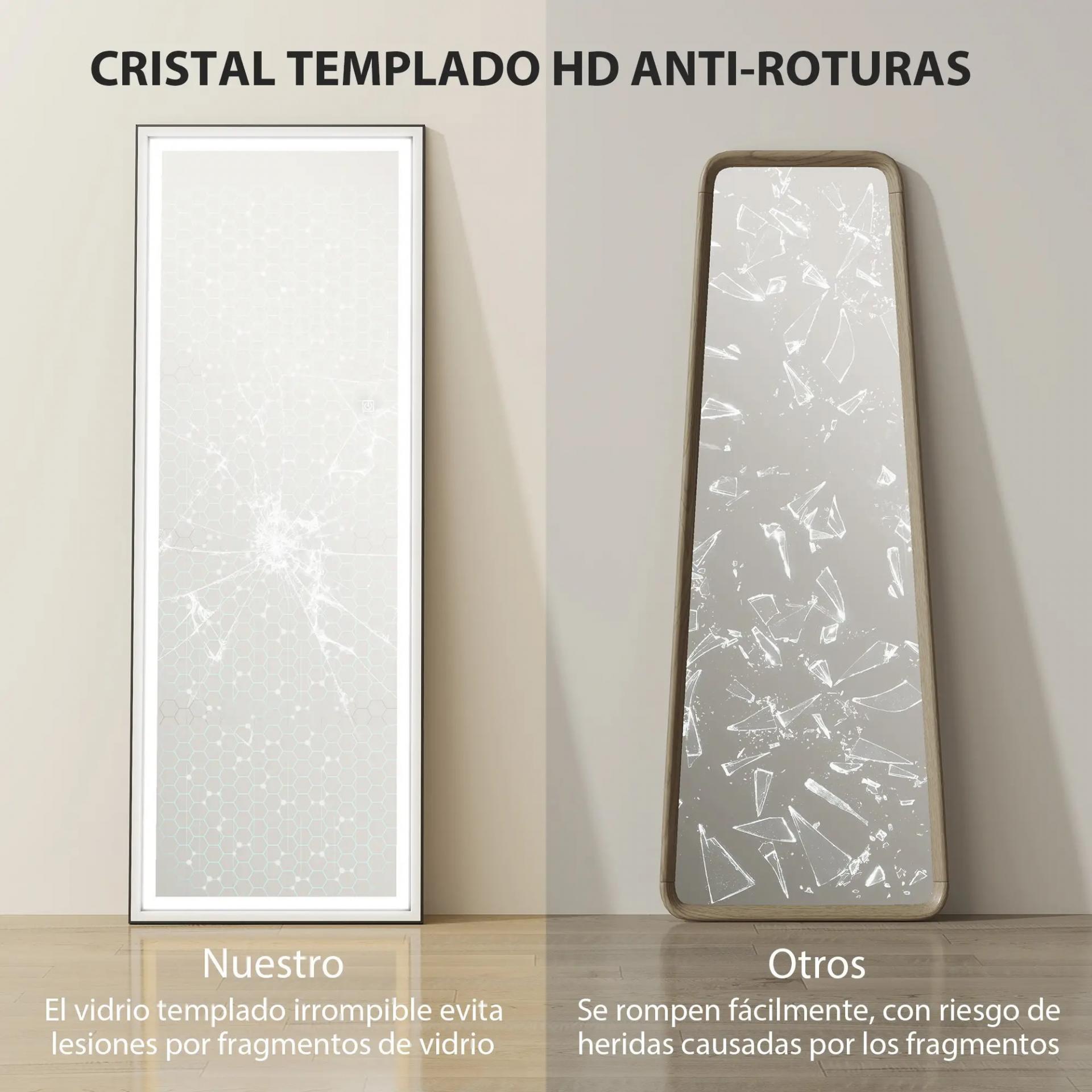 - VISIÓN CLARA Y SEGURA: El espejo de pie está fabricado con vidrio templado de alta calidad que ofrece una visión nítida y brillante. Su superficie reflectante amplía visualmente el espacio, mientras la protección anti roturas garantiza mayor seguridad
