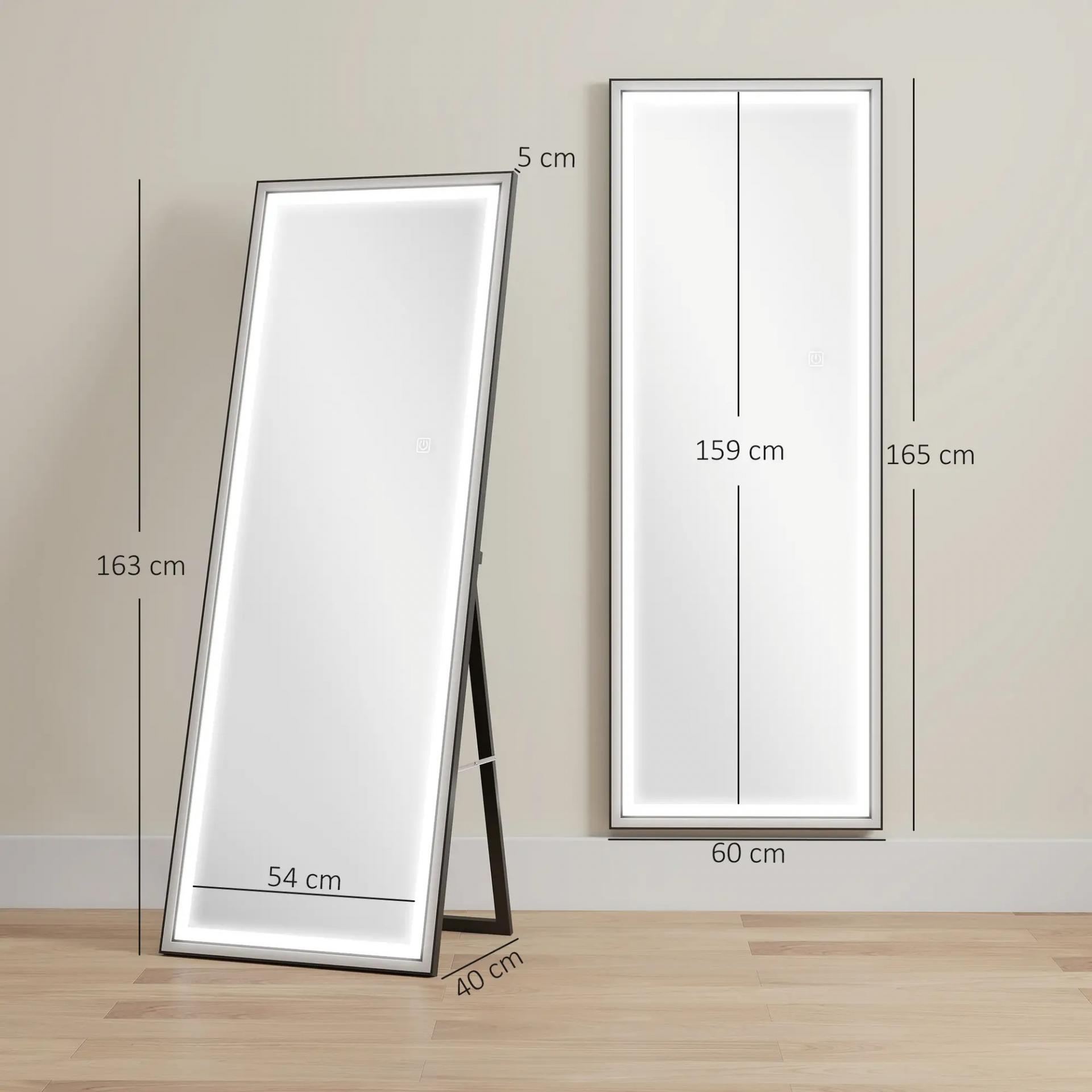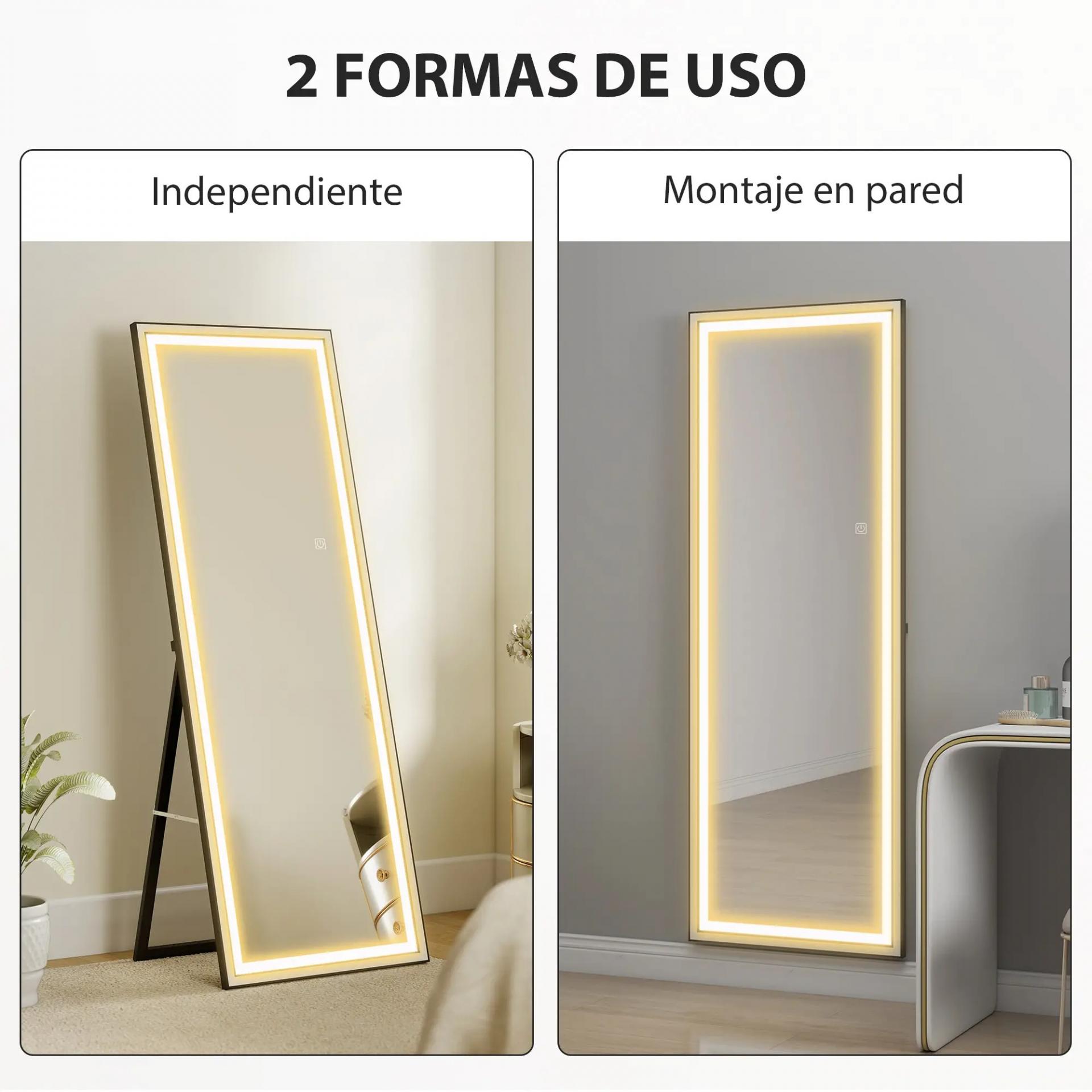 ILUMINACIÓN LED AJUSTABLE: Este espejo de cuerpo entero de HOMCOM incluye luces LED con 3 modos de color y regulación de brillo al tacto. Gracias a la memoria de apagado, recupera la última configuración, ofreciendo comodidad y practicidad en cada uso