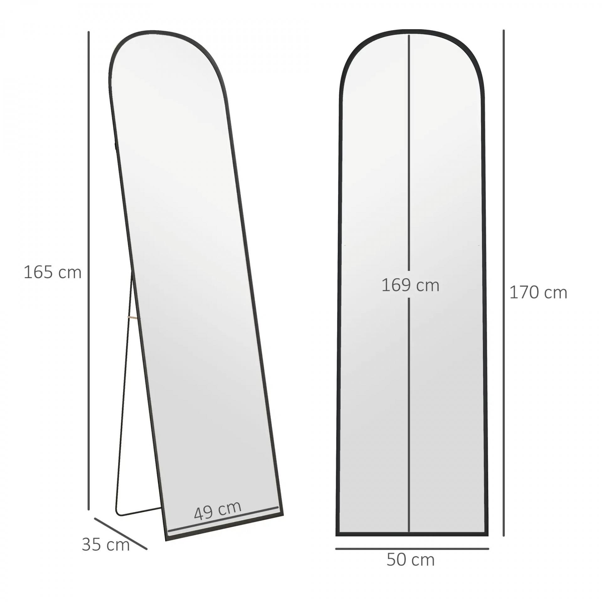 Espejo de Cuerpo Entero 50x170 cm Independiente o Pared con Marco de Aleación de Aluminio y Soporte Negro