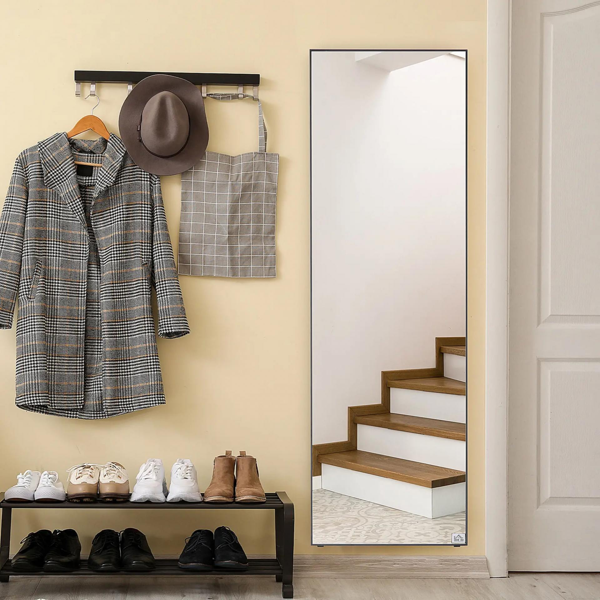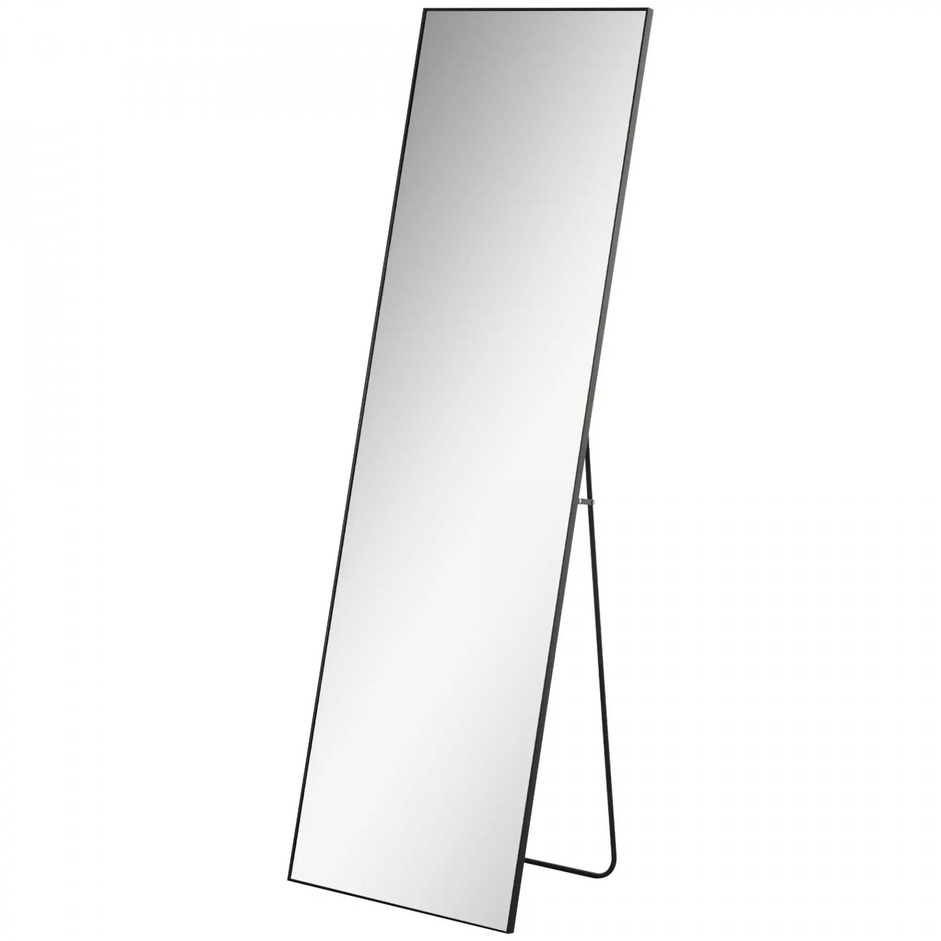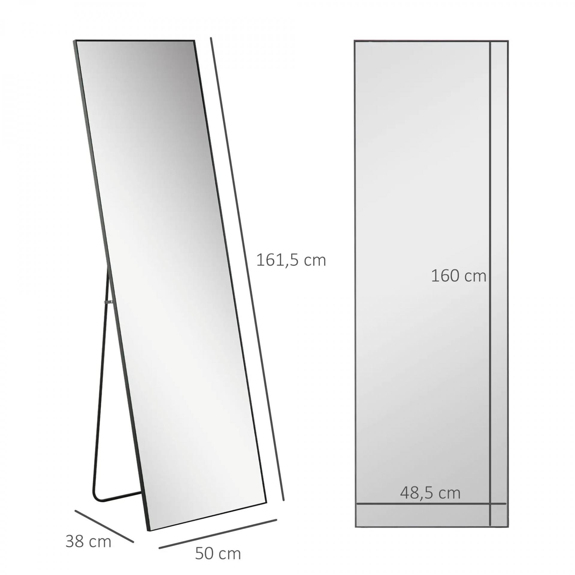 Espejo de Pie Cuerpo Entero de Aleación de Aluminio Espejo de Pared con 2 Formas de Uso Rectangular 50x161,5x2 cm Negro