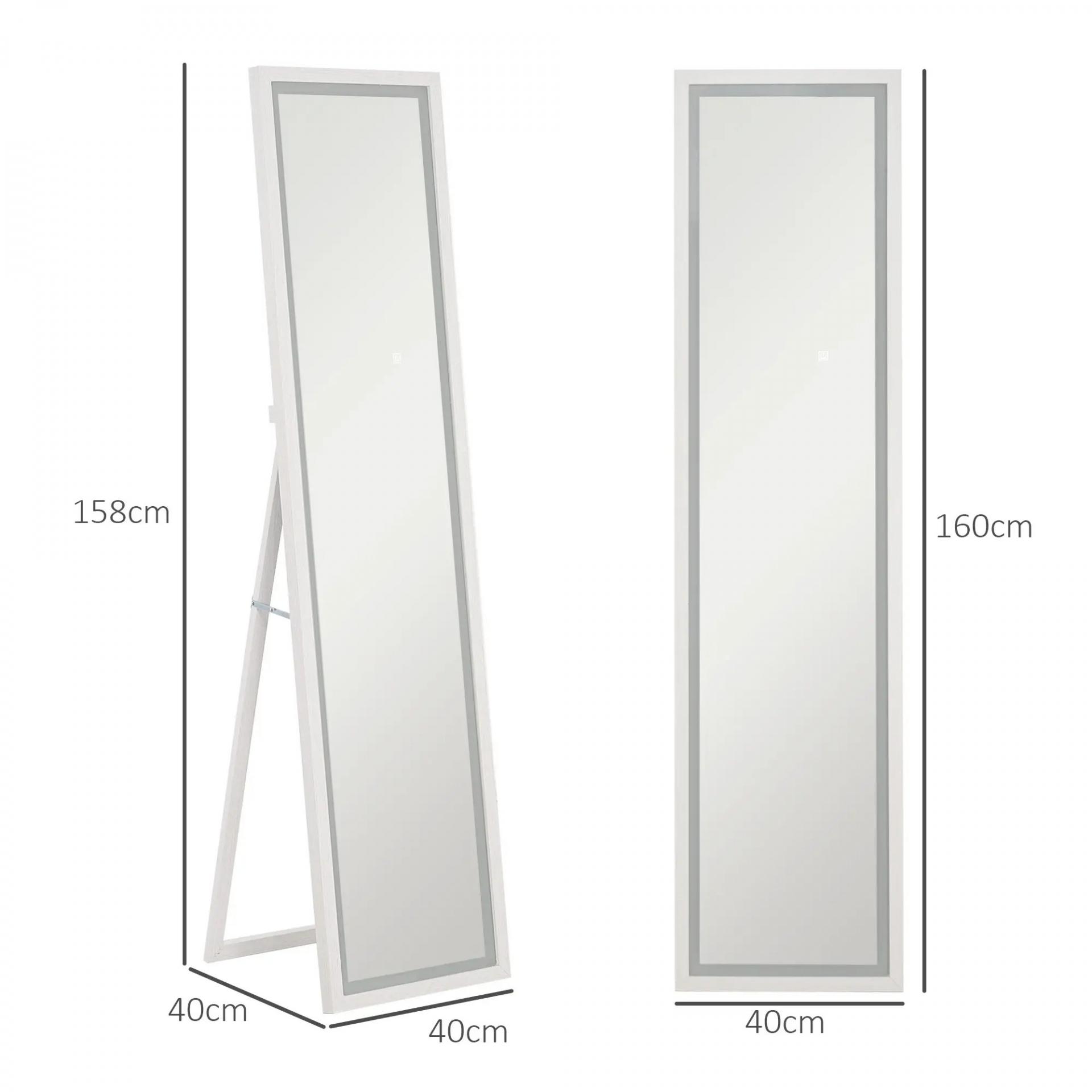 Espejo de Cuerpo Entero con Luz LED 160x40 cm con Iluminación de 3 Colores Táctil Inteligente Función de Memoria Blanco