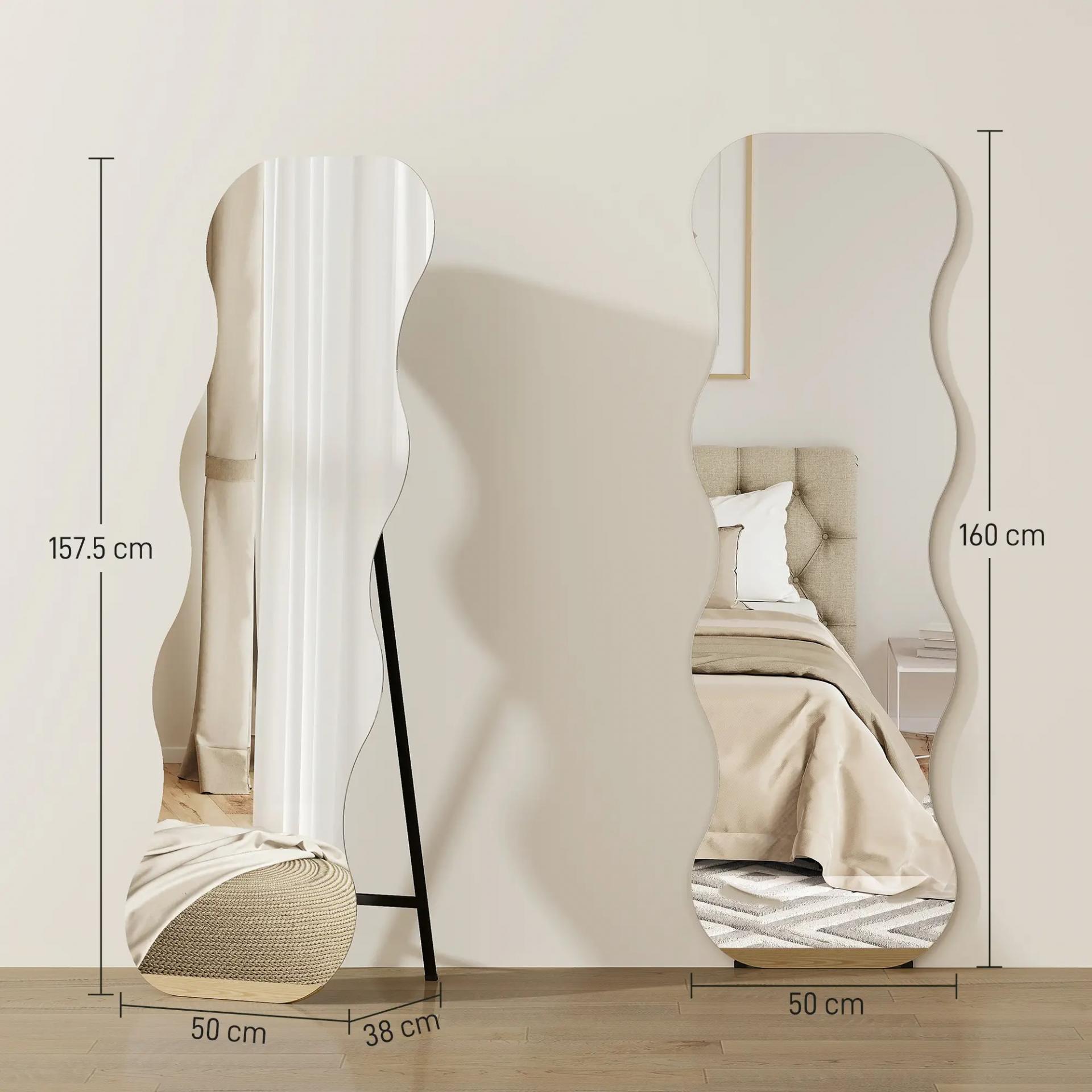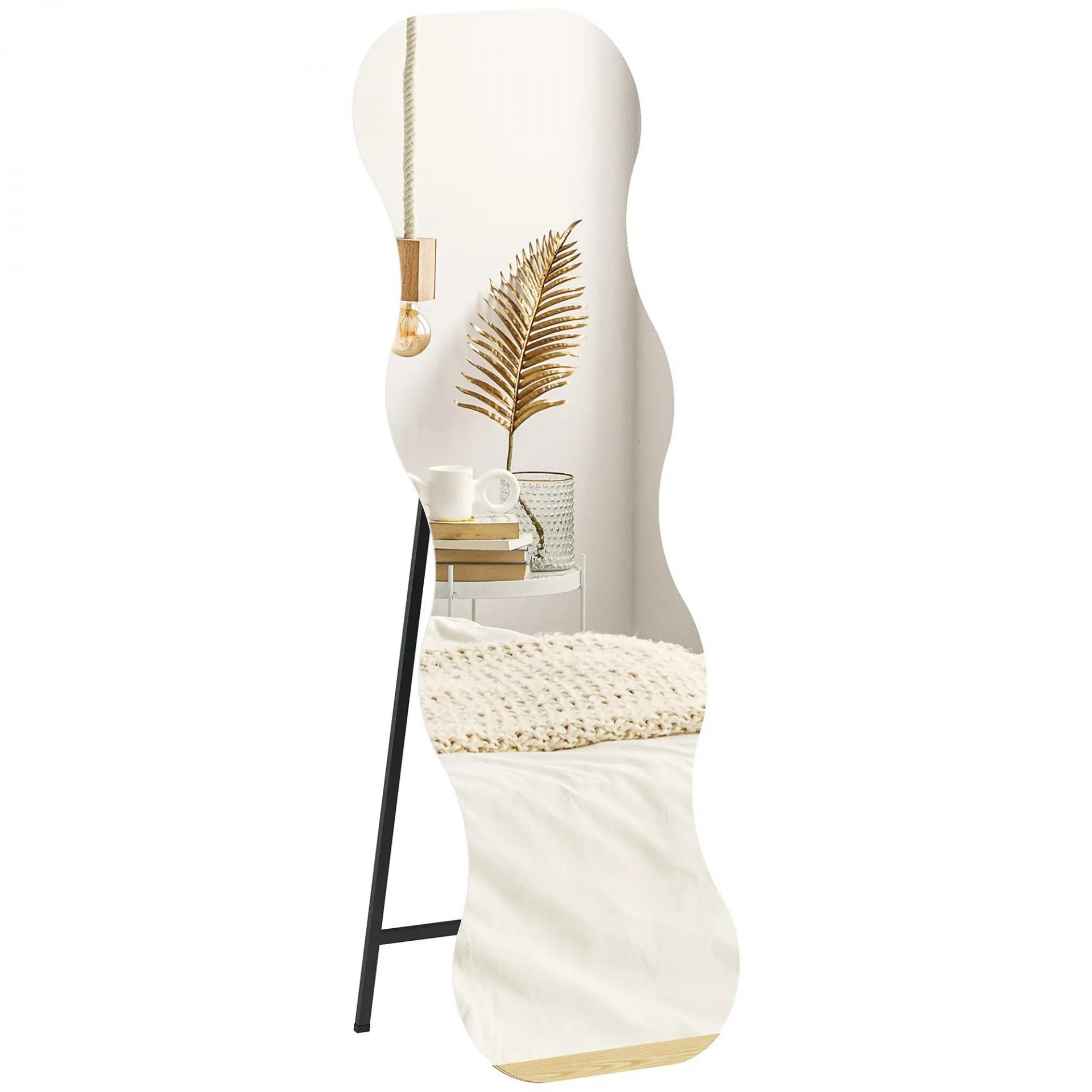 Espejo de Pie Cuerpo Entero sin Marco Espejo de Pie Forma Ondulada con Soporte y Base de Madera 50x2,7x160 cm Negro