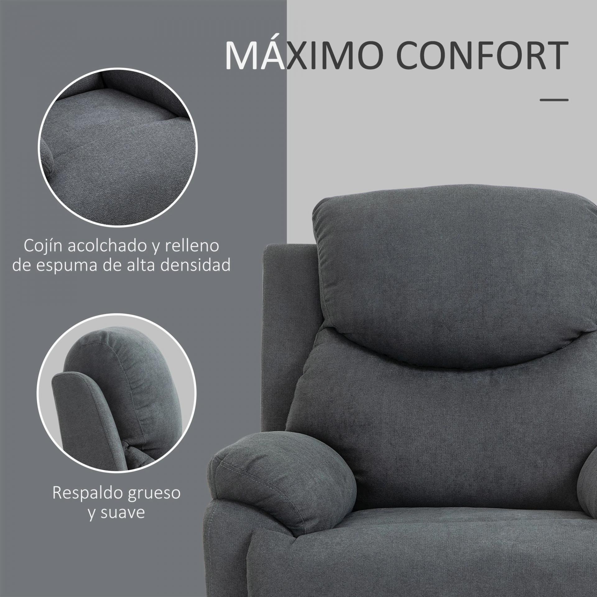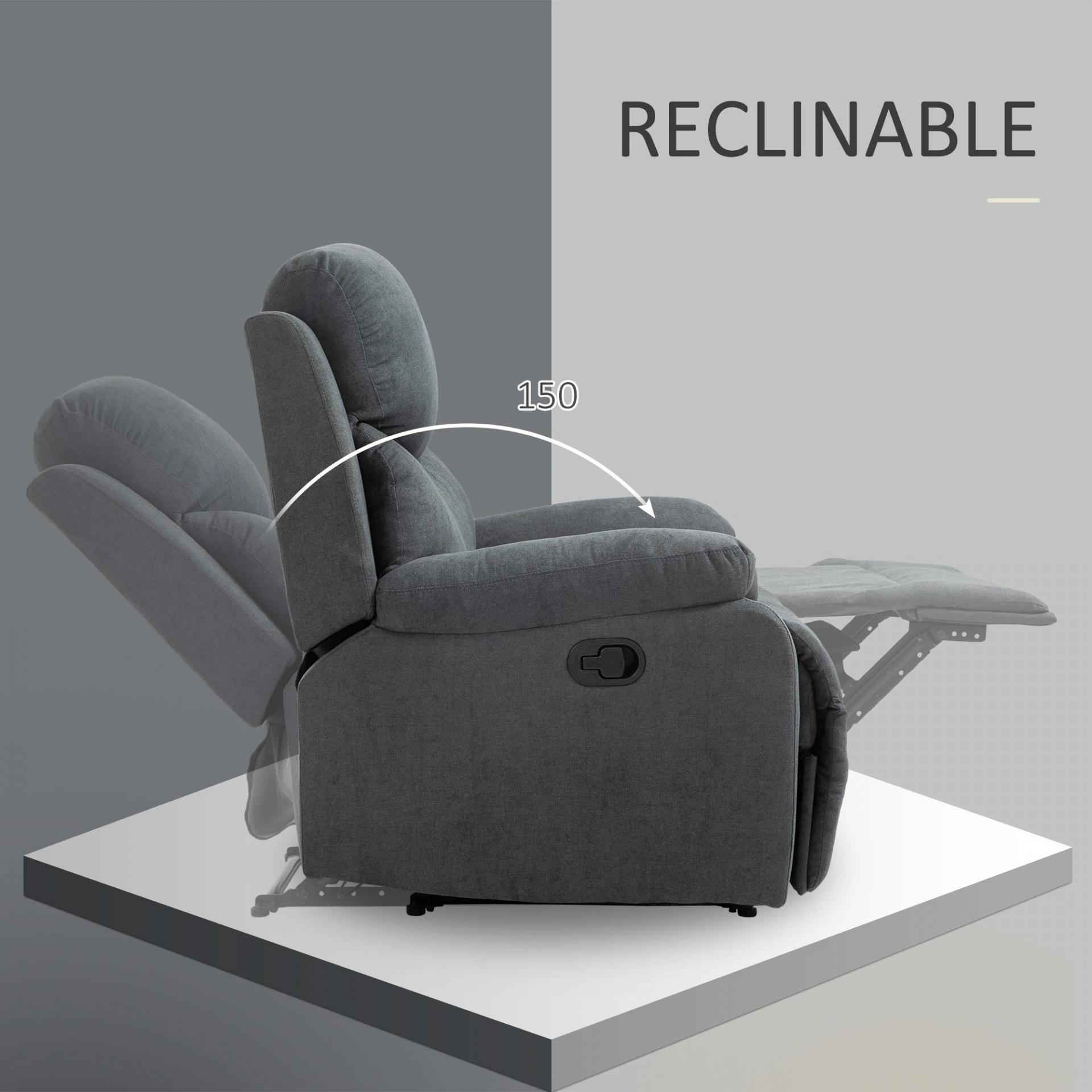 Sillón Reclinable Manualmente 150 Grados con Reposabrazos y Reposapiés Acolchado Grueso de Esponja Soporta hasta 150 kg 97x96x105,5 cm Gris