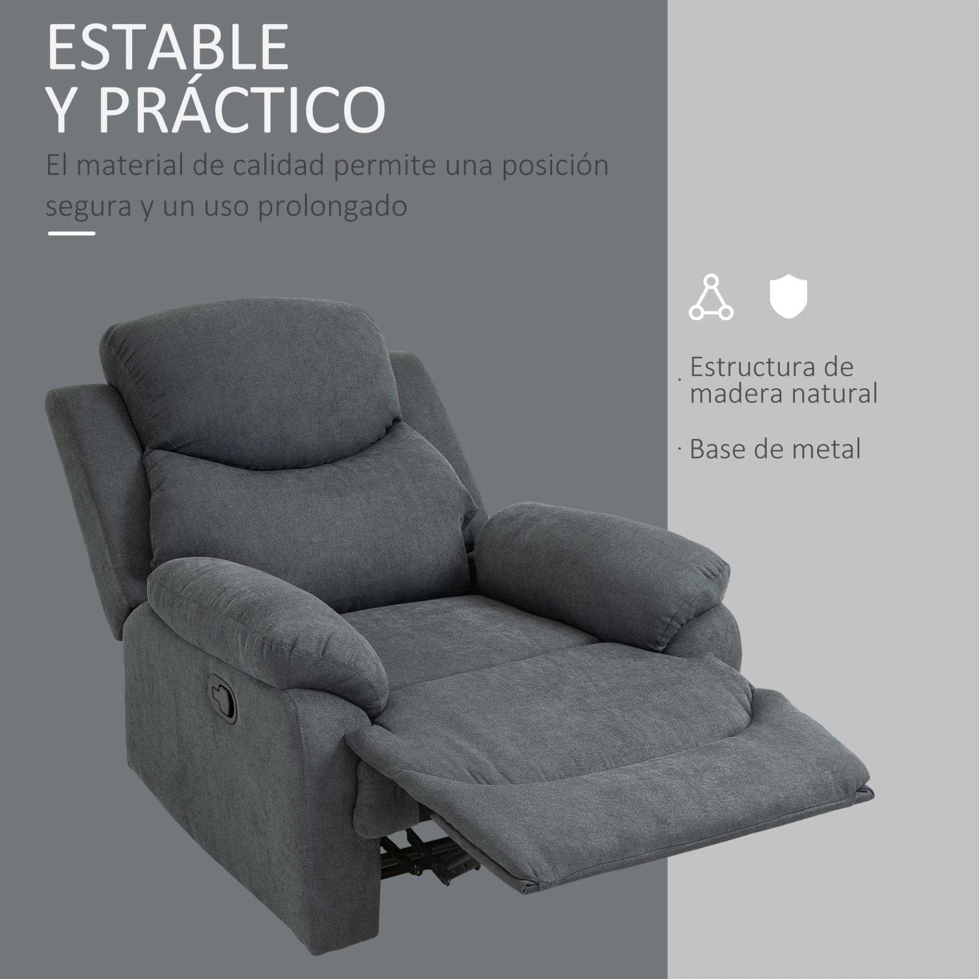 SILLÓN RELAX: se puede inclinar a un ángulo de 150° de forma manual muy fácilmente. Por su diseño en color gris y líneas clásicas podrás colocarlo en diferentes espacios de la casa, en el despacho o incluso en salas de espera.
