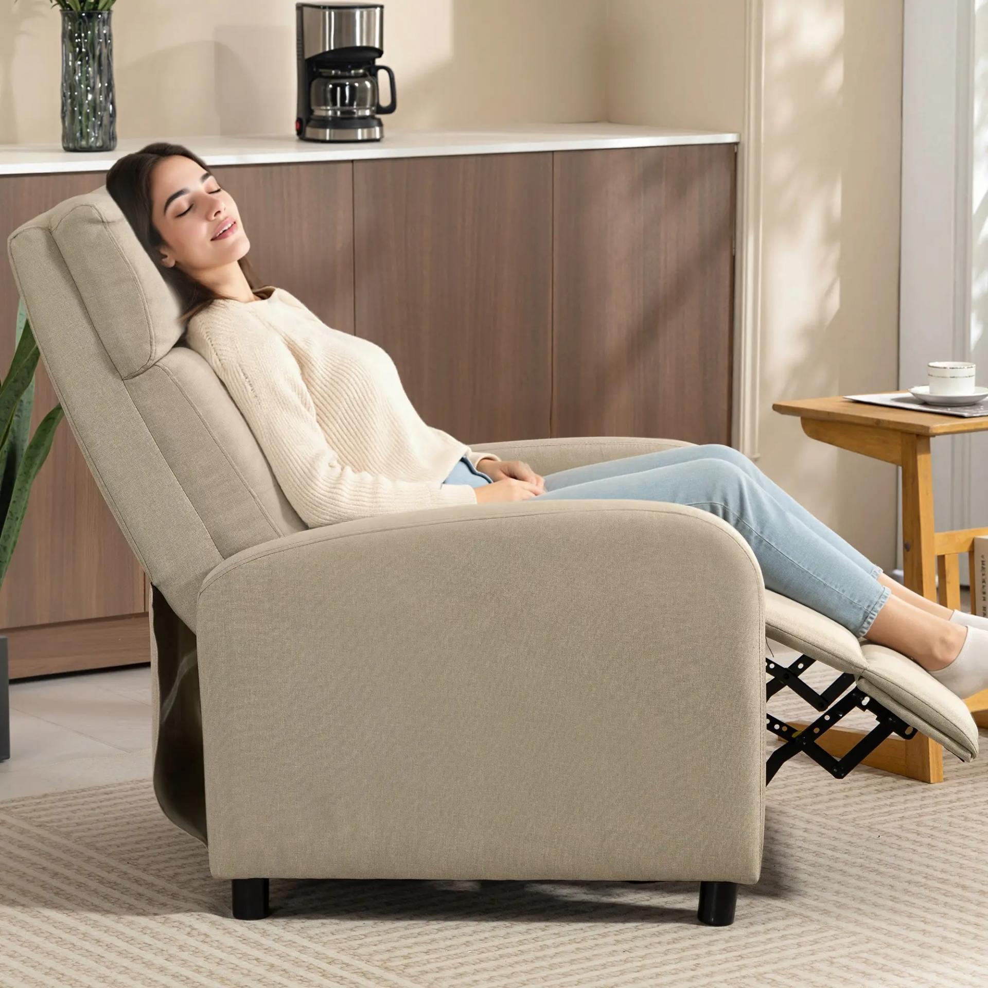 - MATERIAL RESISTENTE: Tapizado en tela de aspecto de lino, este sillón relax está hecha con un material duradero y transpirable que garantiza una experiencia de asiento cómoda. Su estructura resistente y acabado de calidad garantizan comodidad y resistencia a largo plazo