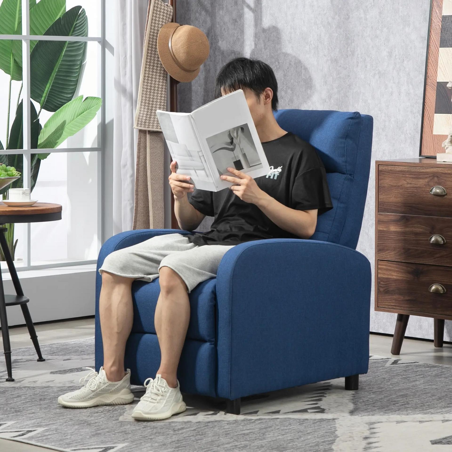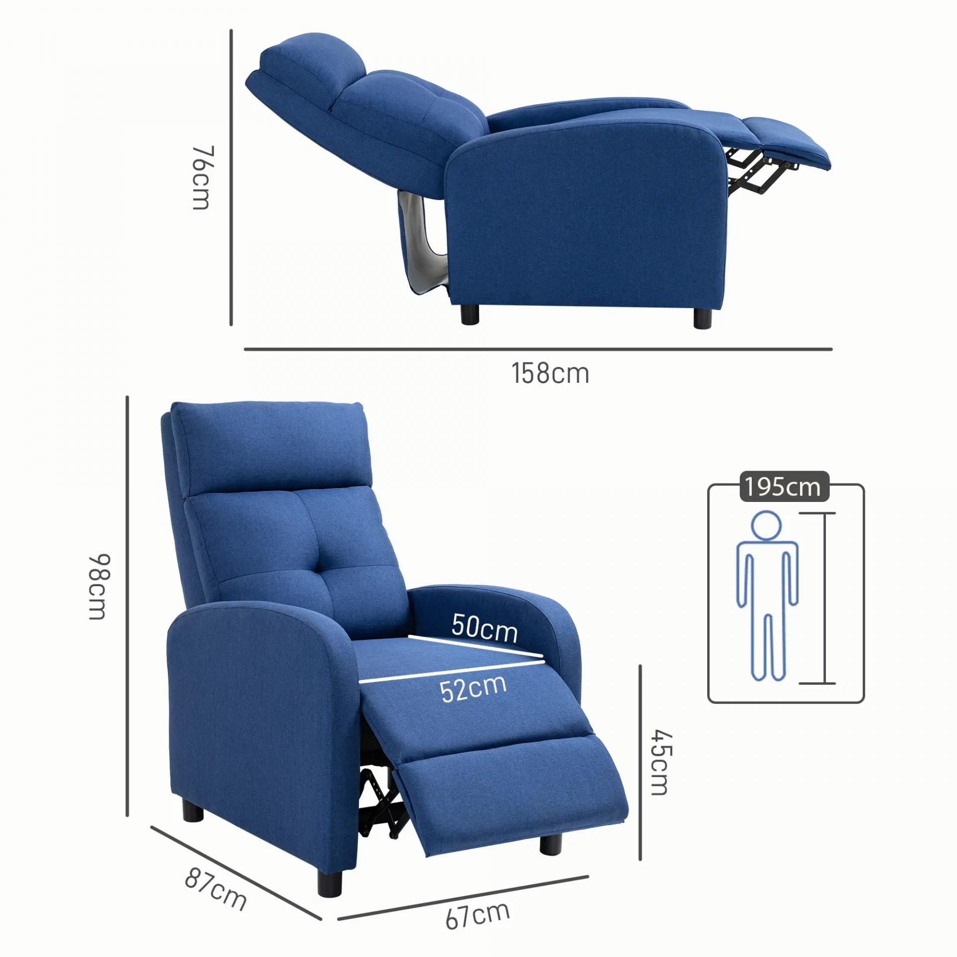 Sillón Reclinable Manual Sofá Individual con Reclinación hasta 155º Carga 150 kg Azul
