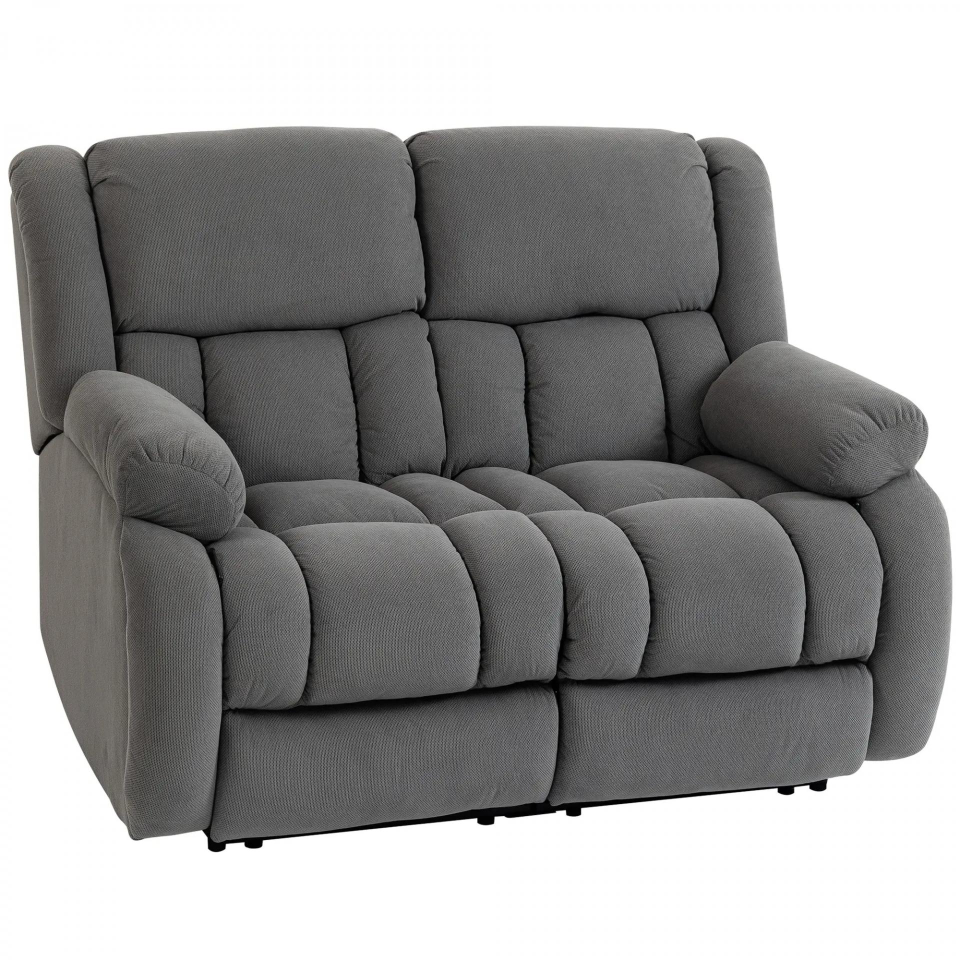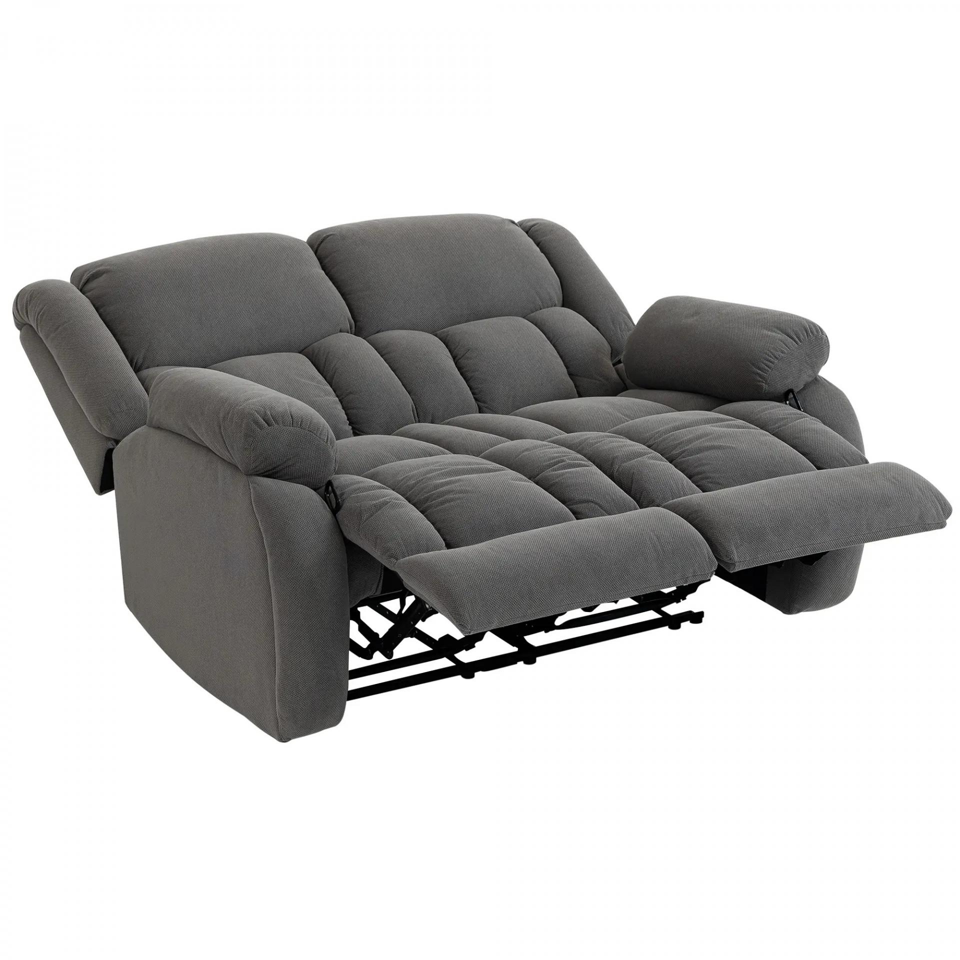 Sillón de 2 Plazas Relax Reclinable Manual Sillón Relax Tapizado en Terciopelo Reposapiés Ajustable Asiento Amplio Gris
